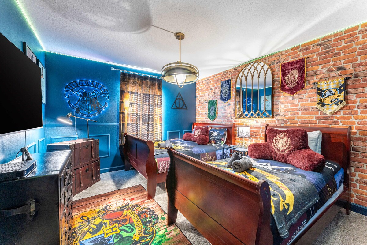 Welcome to your own cinematic getaway — a family-friendly 4-bedroom villa where Star Wars adventures and Harry Potter magic come to life. Located just minutes from Disney, Universal, and Orlando’s top attractions, this home is designed so kids can play nonstop while adults actually relax. From immersive themed bedrooms to your own private pool and hot tub, this is where unforgettable family memories happen.
