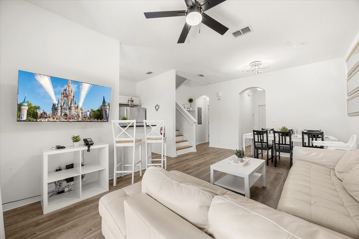 Water view, super close to heated pool! Beautiful spacious entirely remodeled townhouse! It’s a large 1400sq ft 2 story home. Hardwood flooring throughout the entire home. All bathrooms are new and updated. Fresh paint and all new furniture. Minutes from Disney World (3miles), Old Town Kissimmee boardwalk (1 mile), Univesal (11miles). Plenty of shopping near by. NEW HEATED POOL 76 degrees, basketball court and 2 play grounds on property. Ducks and turtles walk around the pond daily.