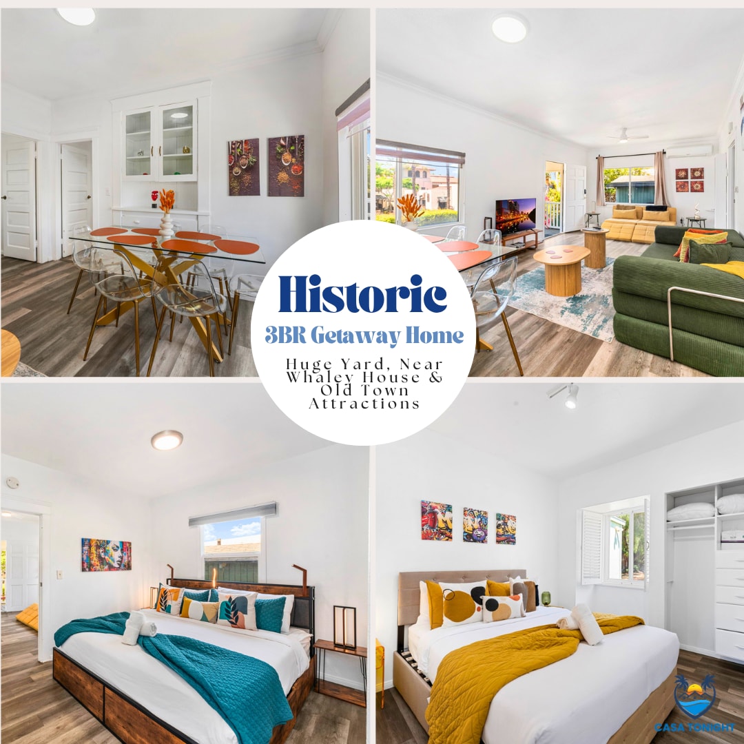 This location doesn't get any better- Old Town restaurants, bars and shops all at your doorstep! Highlights: -stylish and spacious with tall ceilings, 1550sqft -great for large families or small gatherings -free onsite parking (2 spaces) -directly in the middle of Old Town Once you've experienced Old Town, the trolley station is a six minute walk away to explore the rest of San Diego. This house is central and minutes away to beach, zoo, balboa park, downtown, sea world, airport, and more!