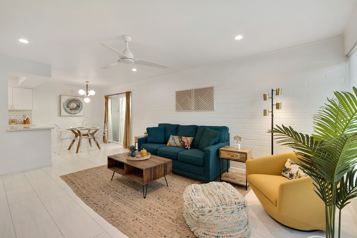 Mid-century modern meets luxurious desert living in this beautifully remodeled Tempe townhome! The Papago Pad features 2 bedrooms, 2 bathrooms and a loft that triples as a bedroom/office/coffee bar. You can look forward to a home that is peacefully situated minutes from the Papago Mountains and perfectly central to Sky Harbor Airport, Old Town, Mill Ave and ASU. Also fully remodeled with tons of amenities, a spacious turf patio and community pool! TPT License: 21381359