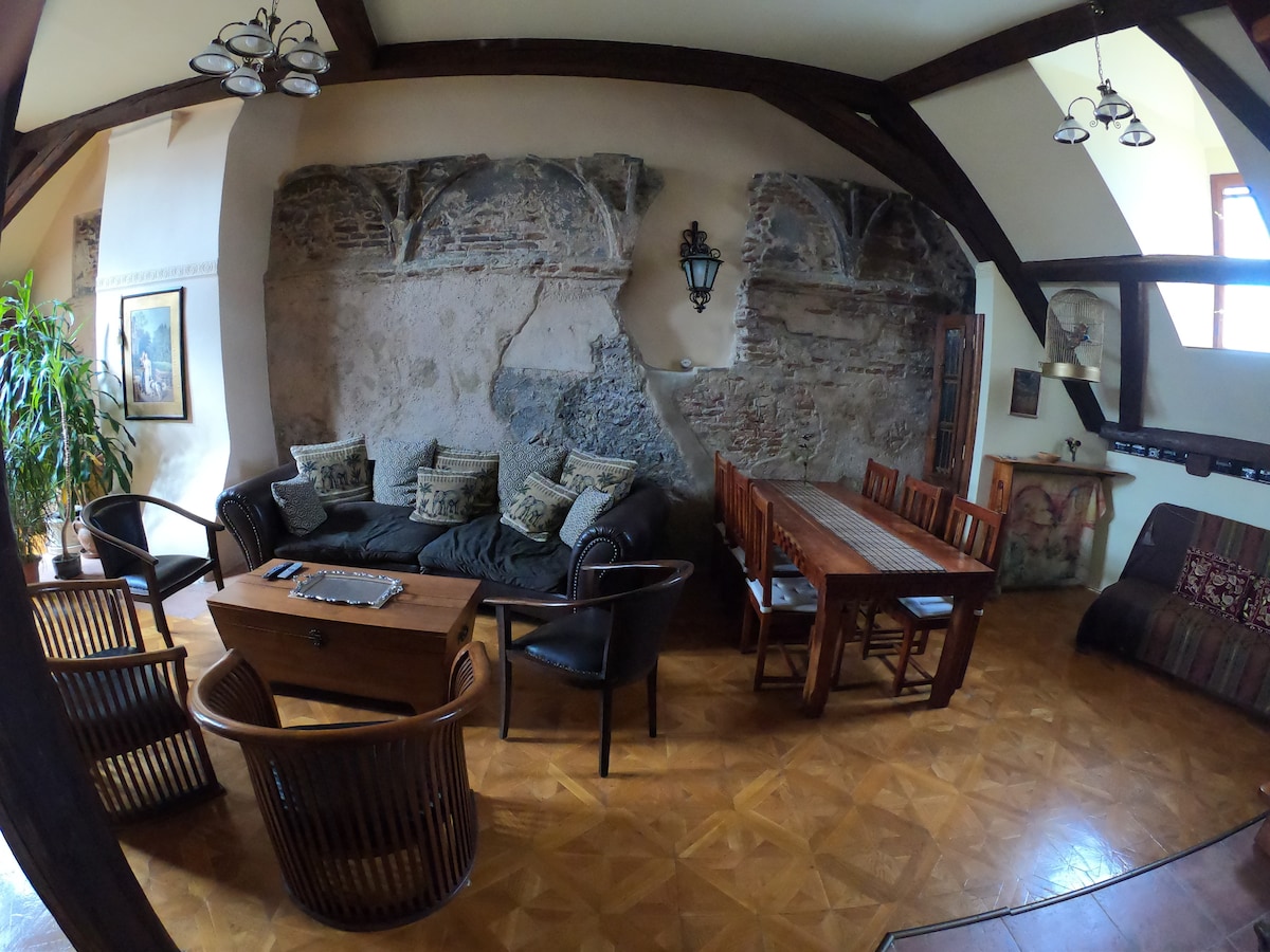 Newly refurbished under roof apartment with nice terasse, located within walking distance to old town and very close to shopping mall and lot of restarants and bars. Apartment was specially designed and handcrafted to perfection for your ultimate pleasure and comfort during your stay. Combination of industrial style with modern kitchen with attention to details is best what you can find in this category in walking distance to old town.