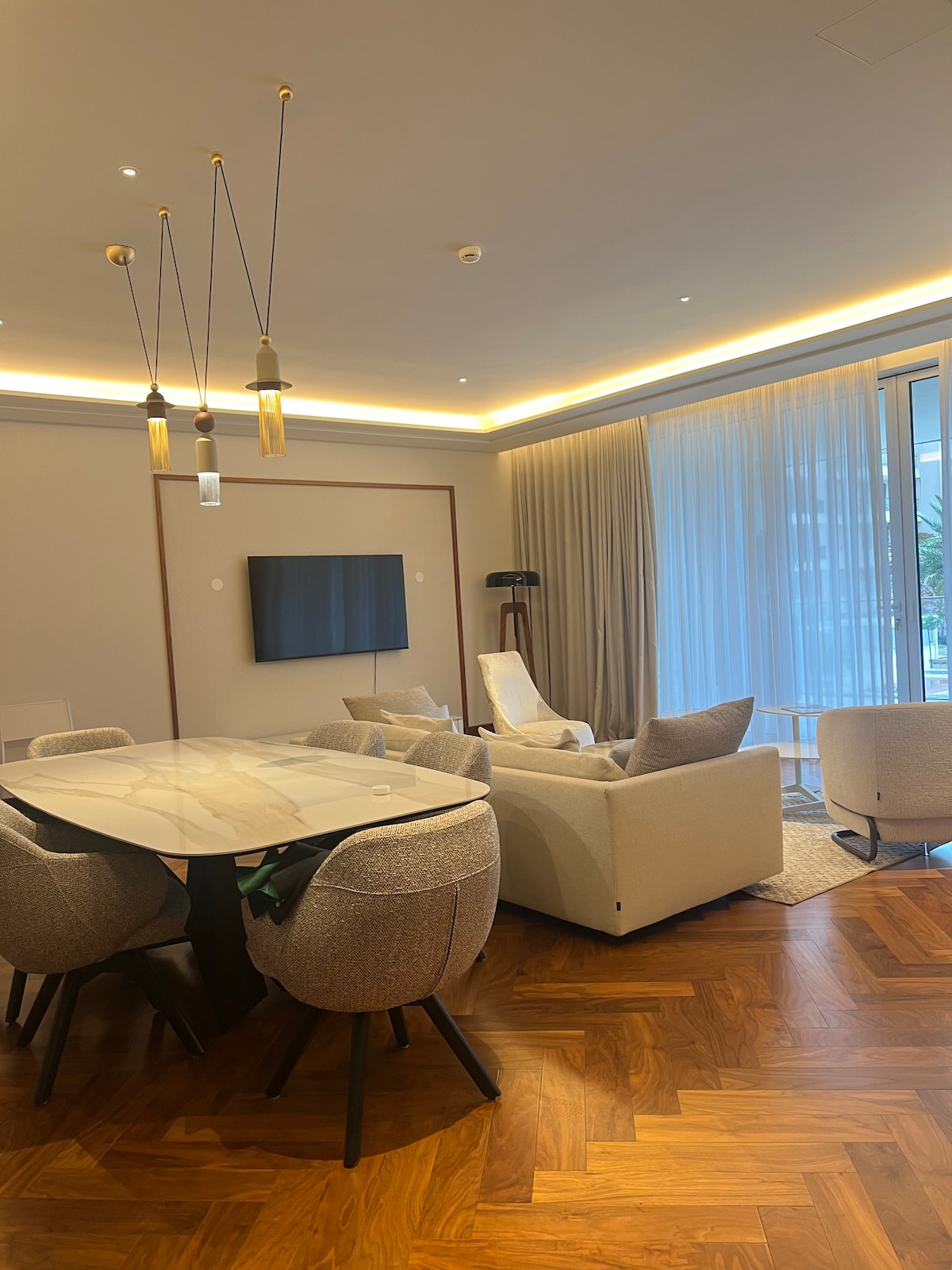 Enjoy your stay in this cozy and stylish 2-bedroom apartment with access to a shared heated pool, gym, and free parking. Relax in the modern living room or cook your meals in the fully equipped kitchen. Located in a peaceful area full of natural beauty, it's perfect for a relaxing getaway with walk distance to the beach. With a modern bathroom and all essentials provided, it’s ideal for couples, families, or friends. Book now for comfort and calm with nearby to Porto Montenegro/Center.