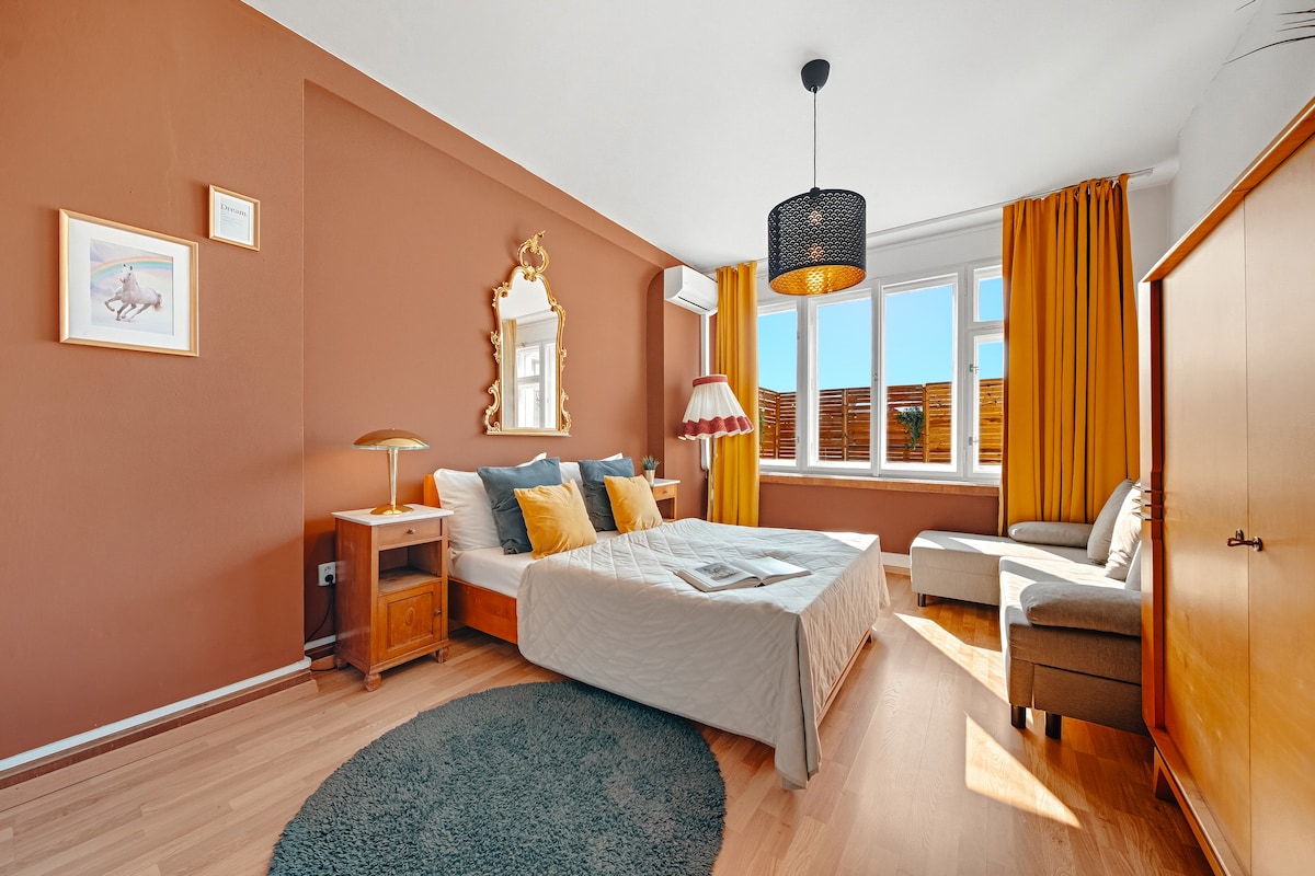 Welcome to our cozy apartment in the heart of the Prague! The apartment offers comfortable accommodation for up to 4 adults and is equipped with everything to enhance your stay. The bedroom features a double bed, and in the living room, you'll find a sofa bed. Both rooms can be closed off for maximum privacy, whether you're traveling with friends or family. Electric roller blinds create the perfect setting for optimal relaxation or sleep, even if you need to rest during the day.