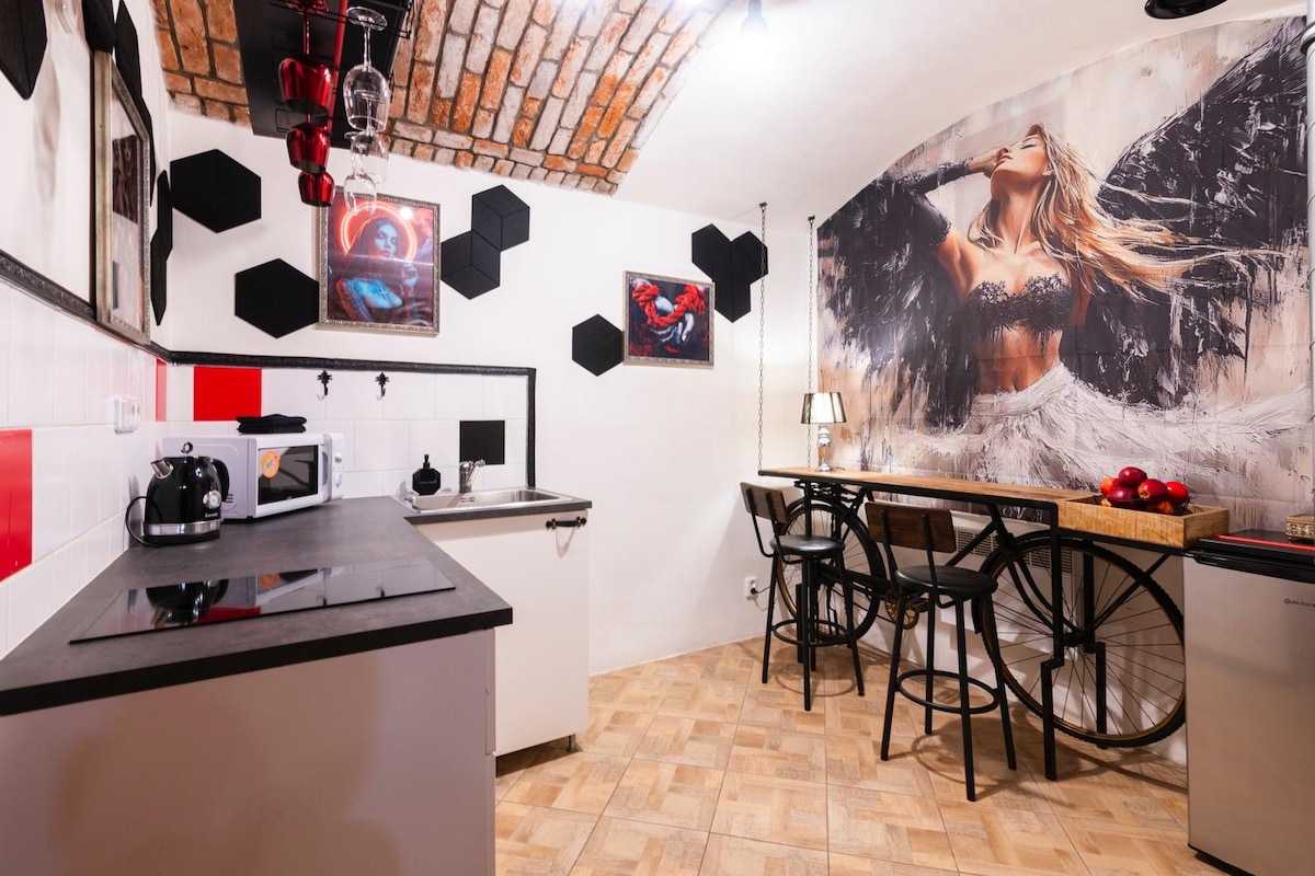 Відкрийте для себе автентичну частину Праги з нашої студії. Жижков відомий своєю яскравою сценою пабами, багатою історією та пропонує унікальні місцеві враження від вашого порога. Після дня відкриття брукованих вулиць, історичних памʼяток і альтернативних мистецьких інсталяцій відпочиньте в нашій студії. Зручне ліжко queen-size забезпечує спокійний нічний відпочинок у привабливій атмосфері відкритої цегли та сучасного стилю.