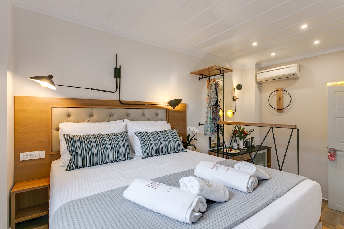 Discover our exquisite suite in Chania Old Port, where history meets modern luxury. This unique accommodation features a private outdoor space with a hot tub and outdoor bed. The suite includes a king-sized bed, a couch that converts into a double bed, a bathroom with a shower, and an additional WC. Enjoy modern amenities like air conditioning, a flat-screen TV, and complimentary Wi-Fi. Perfectly located, it offers a serene retreat just steps from Chania's top attractions.