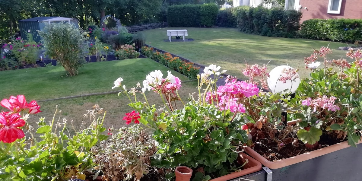 Vor den Toren Oldenburgs und Bremen bieten wir eine eigene Einliegerwohnung aus dem Jahr 2012 mit eigener Küche und eigenem Badezimmer mit Dusche an. Das Bett ist schön groß und gemütlich mit ausreichend Platz für 2 Personen. Es verfügt über einen großen Kleiderschrank, einen Flachbild TV und eine eigene Terasse zum Chillen. Der Eingang ist separat und der Mieter ist somit autark vom Vermieter. Ein eigener Stellplatz am Haus ist vorhanden. Ein Bus nach Oldenburg fährt nur 5 Min. entfernt los.
