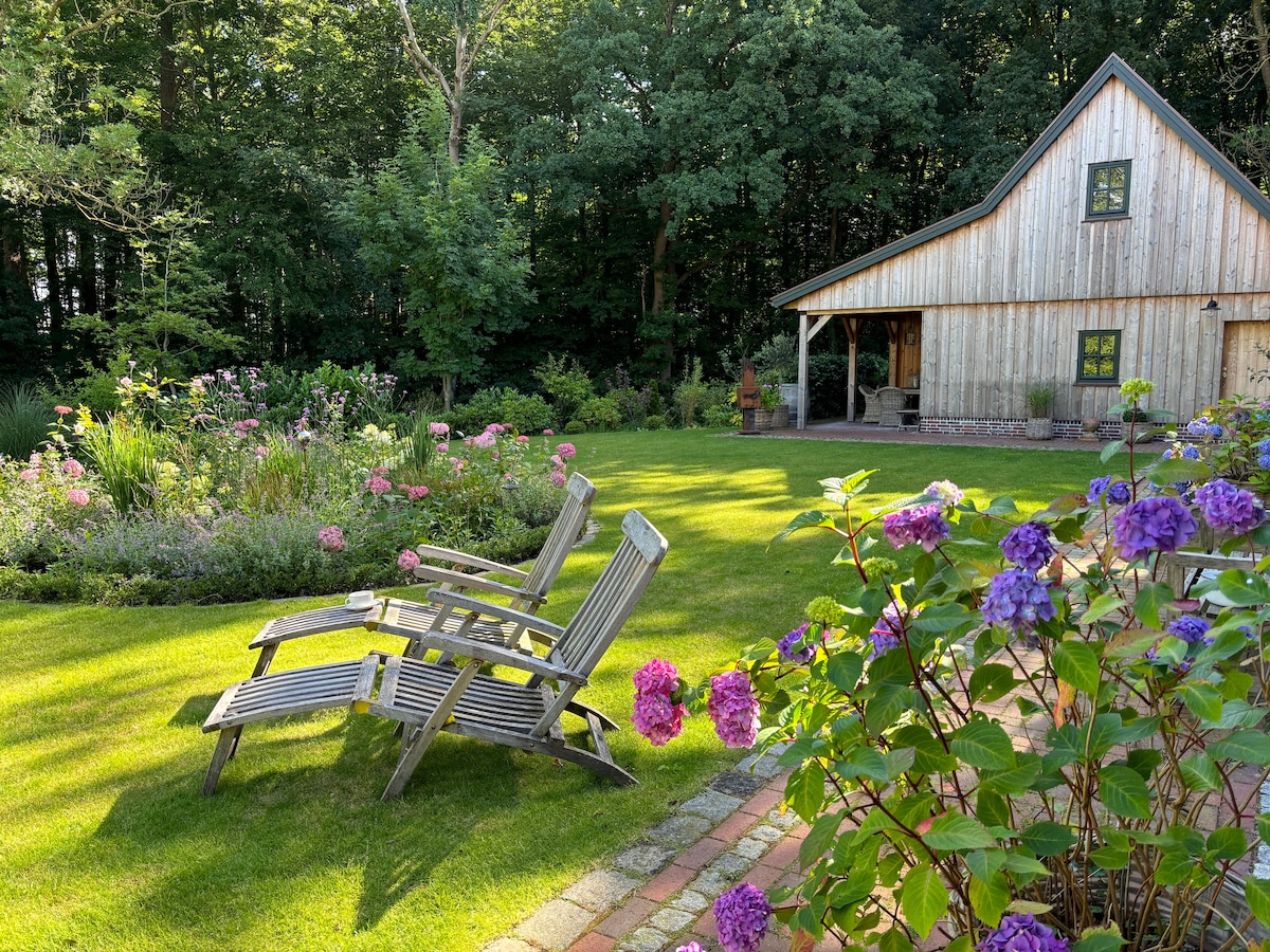 Der „Hühnerstall“ ist ein kleines Gästehaus in einem weitläufigen Garten mit vielen alten Bäumen und bietet Platz für Zweisamkeit, aber auch vier Erwachsene oder eine Familie. Überall in dem Garten finden sich schattige Plätze für die Großen zum Verweilen und verwucherte Geheimecken und Spielmöglichkeiten für die Kleinen. Ein Schwenkgrill mit Feuerschale lädt zu abendlichen Lagerfeuern auf der Terrasse ein. Das angrenzende Wohnhaus steht zur Zeit leer, so dass ihr den Garten ganz für euch habt.