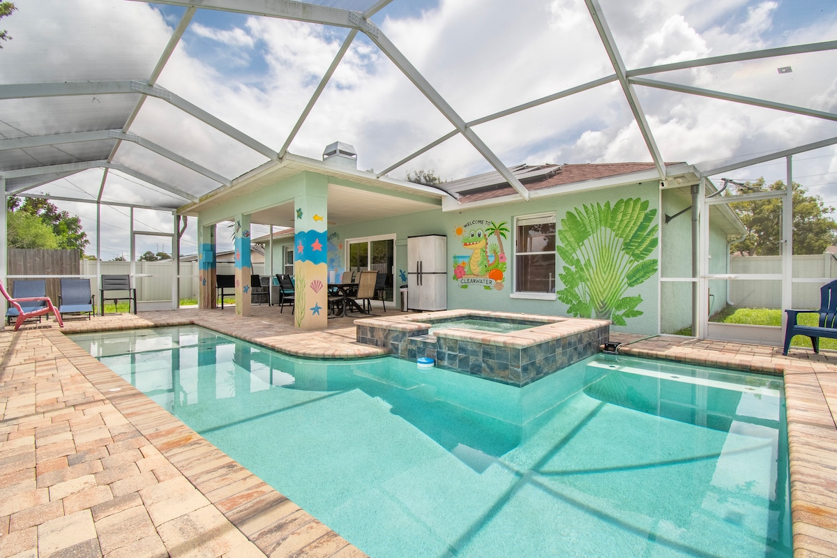 Welcome to Turtle House! Perfectly situated in the heart of Palm Harbor lies this gem. Enjoy a completely renovated private heated pool, and with a quick and convenient access to US19 enjoy shopping, restaurants or local beaches. Perfect for families, couples, and anyone who needs the space to spend time together or enjoy some privacy for enjoyment and relaxation. 10% discount for Military, First Responders, and Teachers - book & message me a photo ID, I'll apply the discount, that's it!