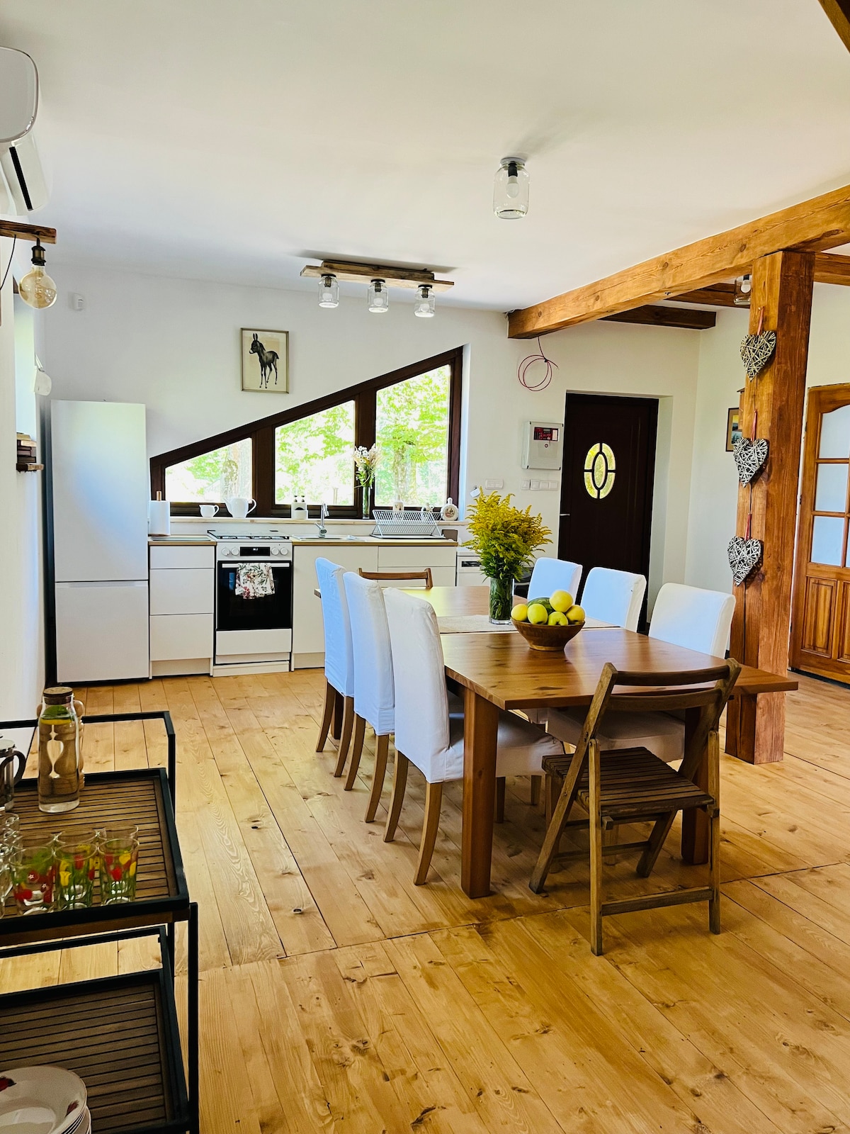 Welcome to our year-round cottage in the center of Mazury Garbate - a region with the cleanest air in Poland. We provide relaxation far from the city buzz and hustle, in a peaceful area, in close contact with nature. The cottage constitutes a perfect starting point for individuals valuing active forms of leisure - charming bike trails, the kayak trips and walking routes.Sauna and garden hot tub on-site (with a stay of a minimum of 3 nights - 1 session in the sauna or hot tub exclusively - free).