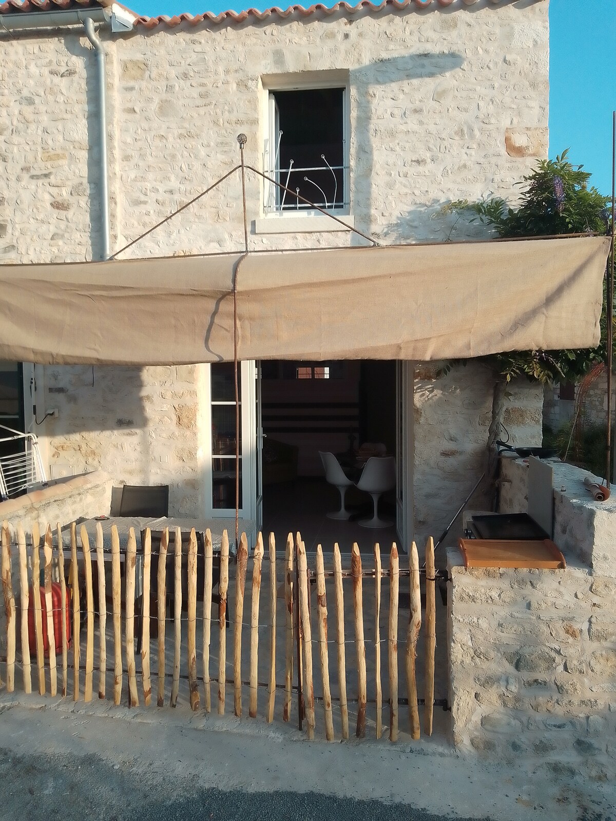 Que ce soit pour une journée , un week-end ou plus , venez découvrir la Charente maritime. Maison au coeur de la Saintonge dans un village très calme à 20 kms de Saintes , 25 de Royan et 22 de Rochefort près du château de la roche-courbon. Départ avant 11 H afin de permettre la désinfection ( COVID 19) du logement pour les futurs voyageurs. RAPPEL le ménage est à la charge des occupants. MERCI DE LIRE L'ANNONCE EN ENTIER , linge de maison FOURNIS , animaux, bruit etc ...