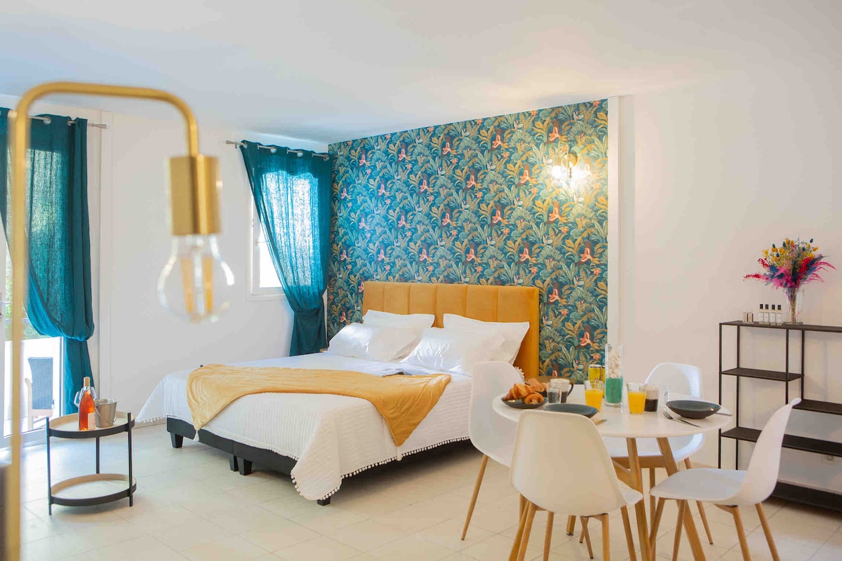 Cozy studio, cozy nest in Saint-Florent, perfect for a romantic getaway. 1.5 km from the beaches and town center, close to the port for boat shuttles to the Agriates Desert and its heavenly beaches. Private terrace for meals for two, comfortable bed, quiet residence with pool and garden, parking. An intimate setting between the sea and nature, ideal for enjoying sunsets and exploring the beauty of Corsica as a couple, with walks, relaxation, and local discoveries.
