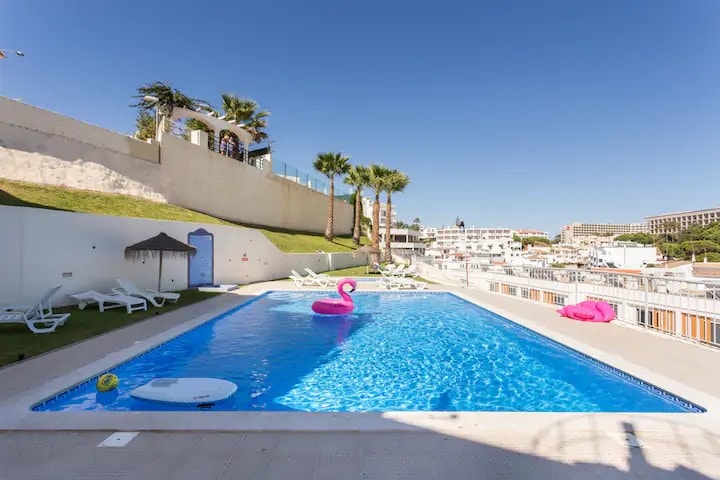 T2 apart in a private condominium; Bedroom with a king-size bed, en-suite bathroom; 1 twin bedrooms with shower rooms; 1 living rooms; Large terrace; 2 private pools; Kitchen is fully fitted; Parking in front of the house - 4 min - restaurants, supermarket, pharmacy, etc. - 6 minutes walk to the beach. - 7 min walk to the center of Olhos Dagua - 8 min walk to the local Best Deal car rental office. - 10 min - Pine Cliffs golf course. - 10 min drive to the center of Albufieira or Vilamoura Marina