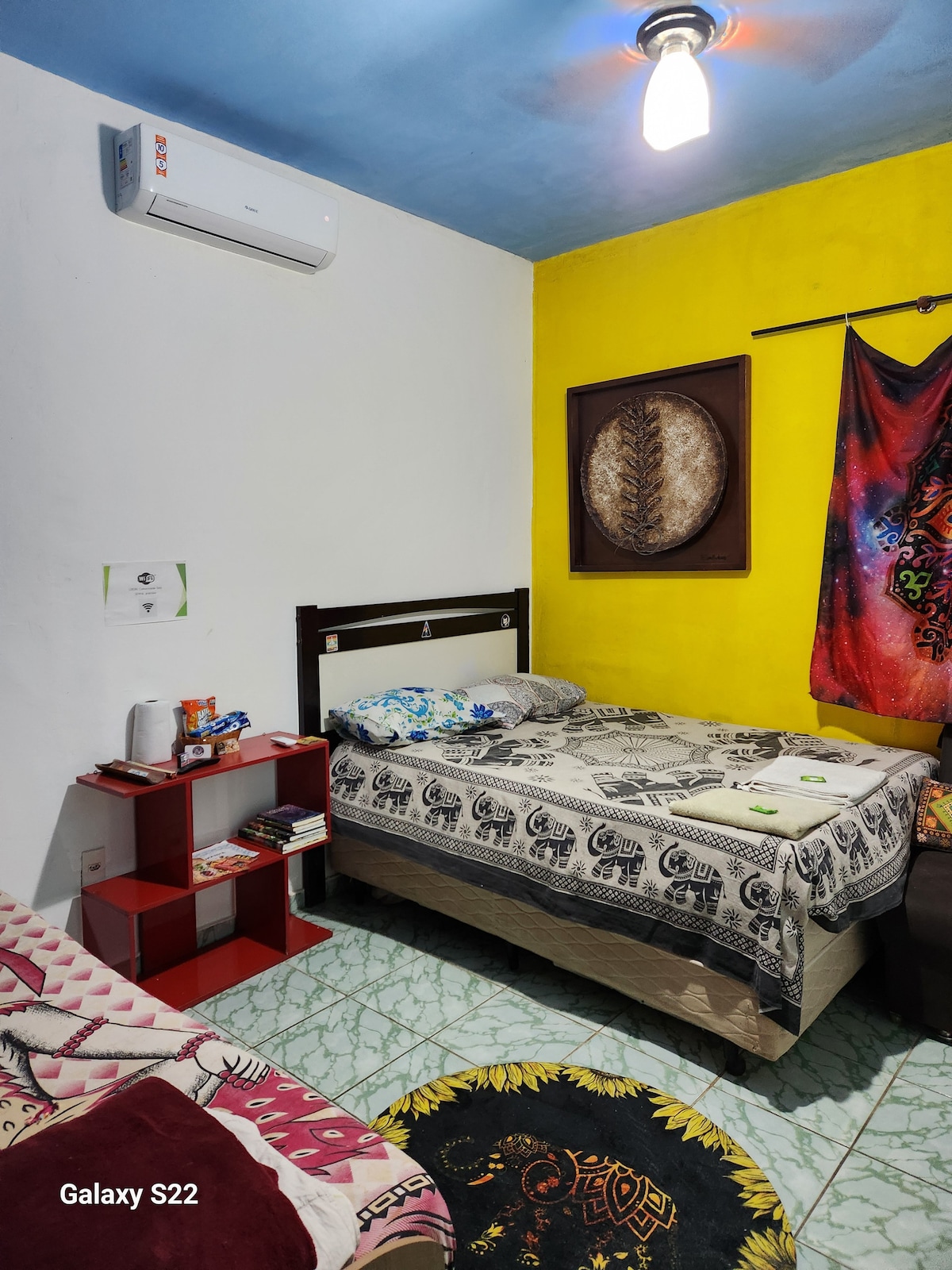 O quarto está equipado com uma TV de 50 polegadas e um ar condicionado novo, acomodando até quatro pessoas. Para reservas a partir de duas pessoas, o pagamento é feito à parte.