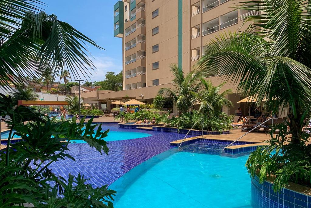 Hotel fica em frente ao Termas dos Laranjais, possui carro elétrico para traslado gratuito ao parque, espaço com lojas, praça de alimentação e entretenimento como um mini shopping acessível aos visitantes e turistas (Burger King, venda de ingressos etc). Mas aproveitem para conhecer também o Hot Beach, Vale dos Dinossauros, Museu do Folclore afinal a cidade é a capital nacional do folclore.