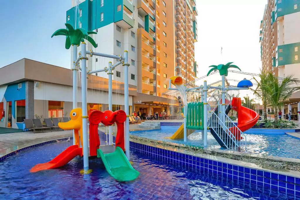O resort conta com piscinas climatizadas, spa, playground, brinquedos aquáticos, academia, brinquedoteca, bares e restaurantes e translado para o Thermas dos Laranjais . Equipado com micro-ondas, frigobar, ar-condicionado em todos os ambientes, TV a cabo e wifi. Os aptos possuem microondas e frigobar e não tem nenhum tipo de utensílios, tais como pratos, copos e talheres. Cada apto tem apenas 1 vaga de estacionamento que está incluso no seu pacote.