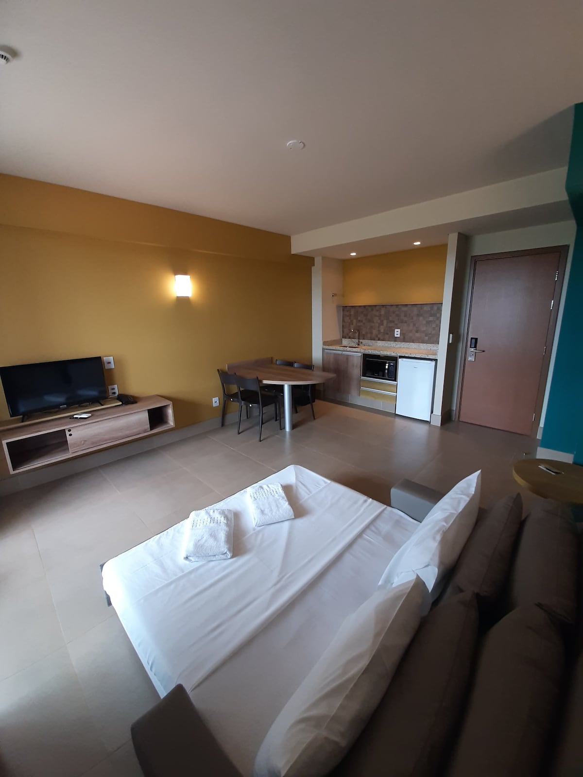 Apto novo lado do parque Thermas dos Laranjais Olímpia - SP. O apto possui uma ampla sala de estar, com sofá cama, cozinha tipo americana, banheiro, quarto com 1 cama de solteiro e uma auxiliar, mais uma cama de casal, banheiro com ducha a gás, secador de cabelo, toalhas, Wifi, ar condicionado, estacionamento coberto e fácil acesso ao parque. *Assim que sua reserva for finalizada aqui na plataforma será solicitado os dados de todos os hospedes que devem ser fornecido no menor tempo possivel.*