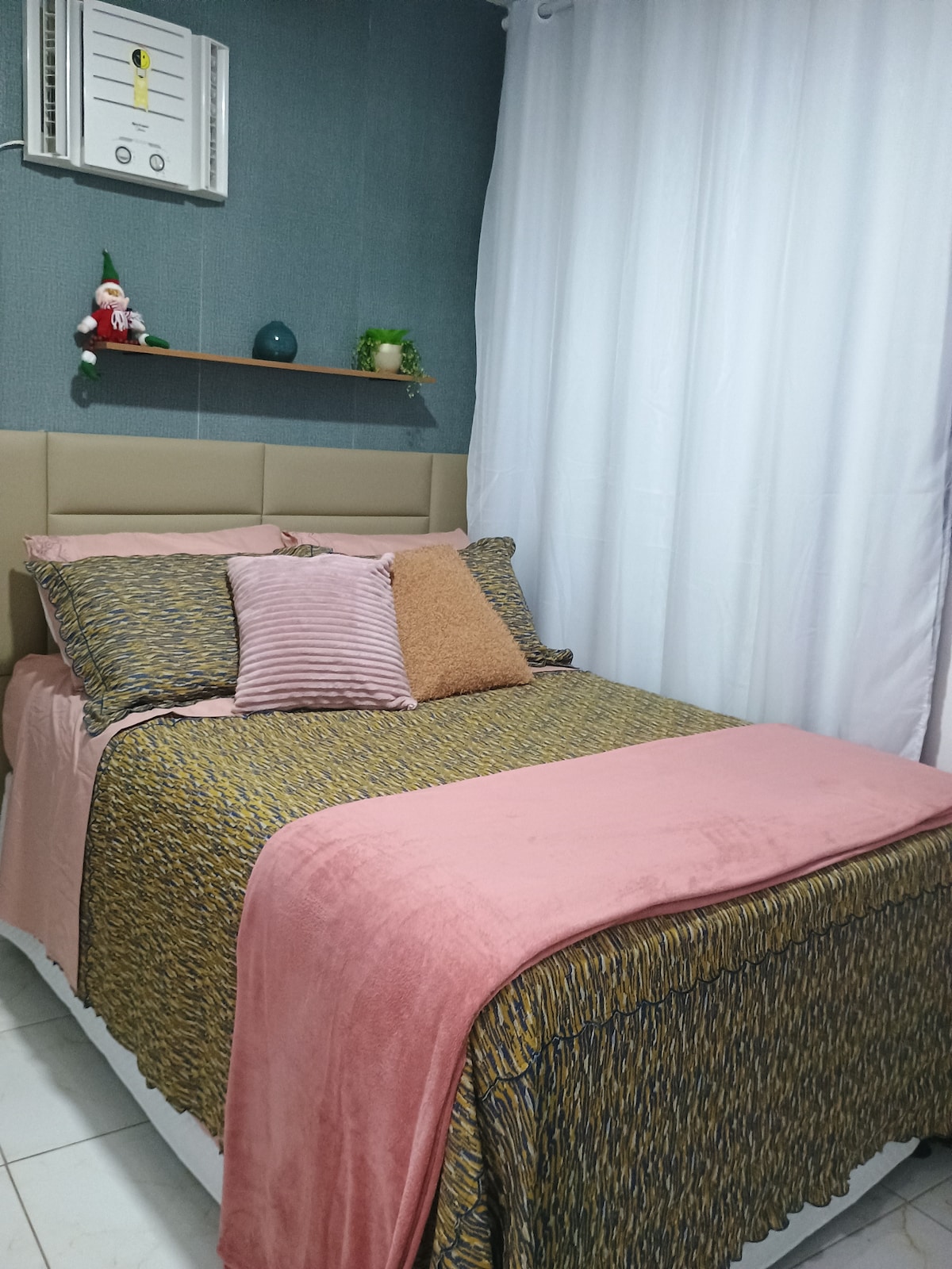 Apto novo c/ 2 quartos, sendo 1 suíte, ambos c/ cama casal. WC suíte e social c/ chuveiro elétrico. SmartTV 60, ventilador, ar split na suíte, secador de cabelo, máquina de lavar, ferro de passar, cozinha completa: geladeira, cooktop, forno, microondas, cafeteira, espremedor laranja, liquidificador, sanduicheira, panelas, inclusive pressão, cuscuzeira, pratos, talheres, copos e xícaras. Estacionamento privativo. Próx Shopping Pateo. Disponibilizamos lençóis, toalhas e travesseiros higienizados.