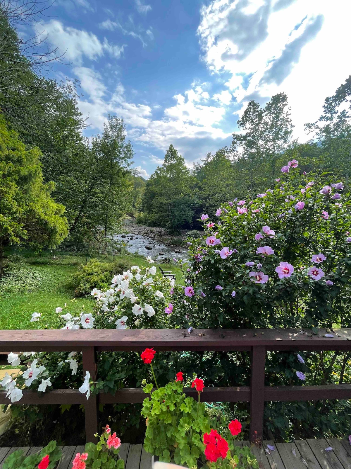 *Art-filled c. 1910 Cottage w/ wrap-around porch *Self-contained natural wonderland for grownups, kids, & dogs *Riverfront w/ amazing swimming hole: trout fishing, swimming, tubing on site *Huge back yard w/ meandering brook, seasonal cascade, classic tree swing, & surrounding woods *Speedminton court *Mature perennial butterfly gardens *Fire pit *Weber Gas Grill *Cedar hot outdoor rain shower nestled in side garden *Minutes walk to Ashokan Reservoir Rail Trail (run/bike/stroll); 2 adult bikes