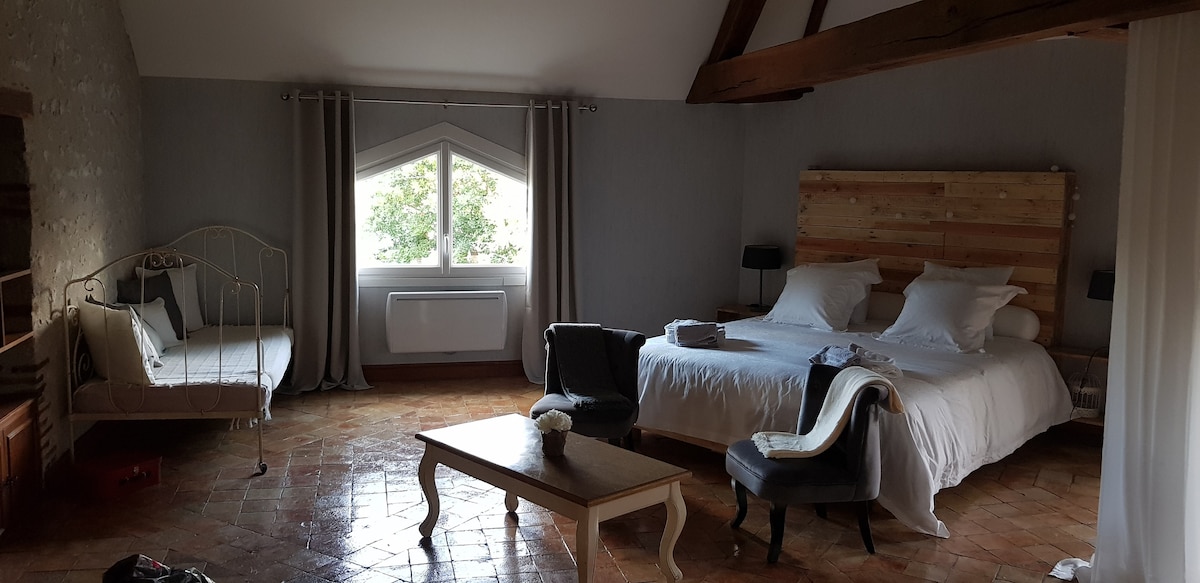 In the heart of Beaugency's historic city center, La Sourcière welcomes you to its two carefully decorated guest rooms. A private lounge with a kitchenette completes this charming space, where you can fully feel the history of this place. A quiet courtyard will be the ideal place to recharge your batteries or enjoy breakfast (free). Cyclists, stay in complete peace of mind thanks to a secure area where you can leave your bikes. 20 minutes from Chambord and 300 meters from the Loire.