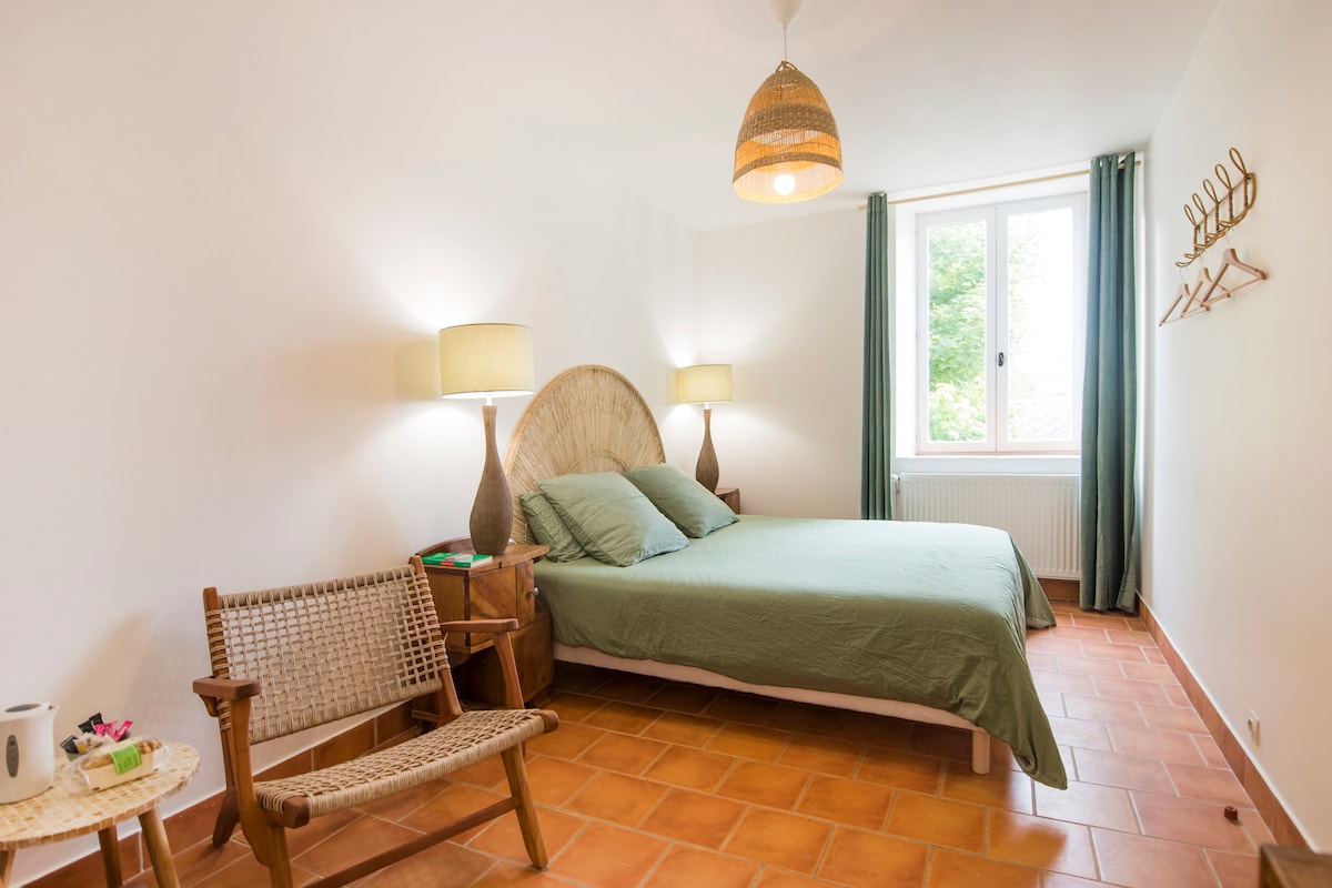 Laissez-vous séduire par cet adorable hébergement. Dans une grande maison ancienne, chambre privée de 20m² au sol ( sous les combles) , ventilateur. Jardin clos de 500m² arboré avec terrasse semi-ombragée par un eucalyptus. La maison accueille aussi un petit chien très gentil et très joueur.