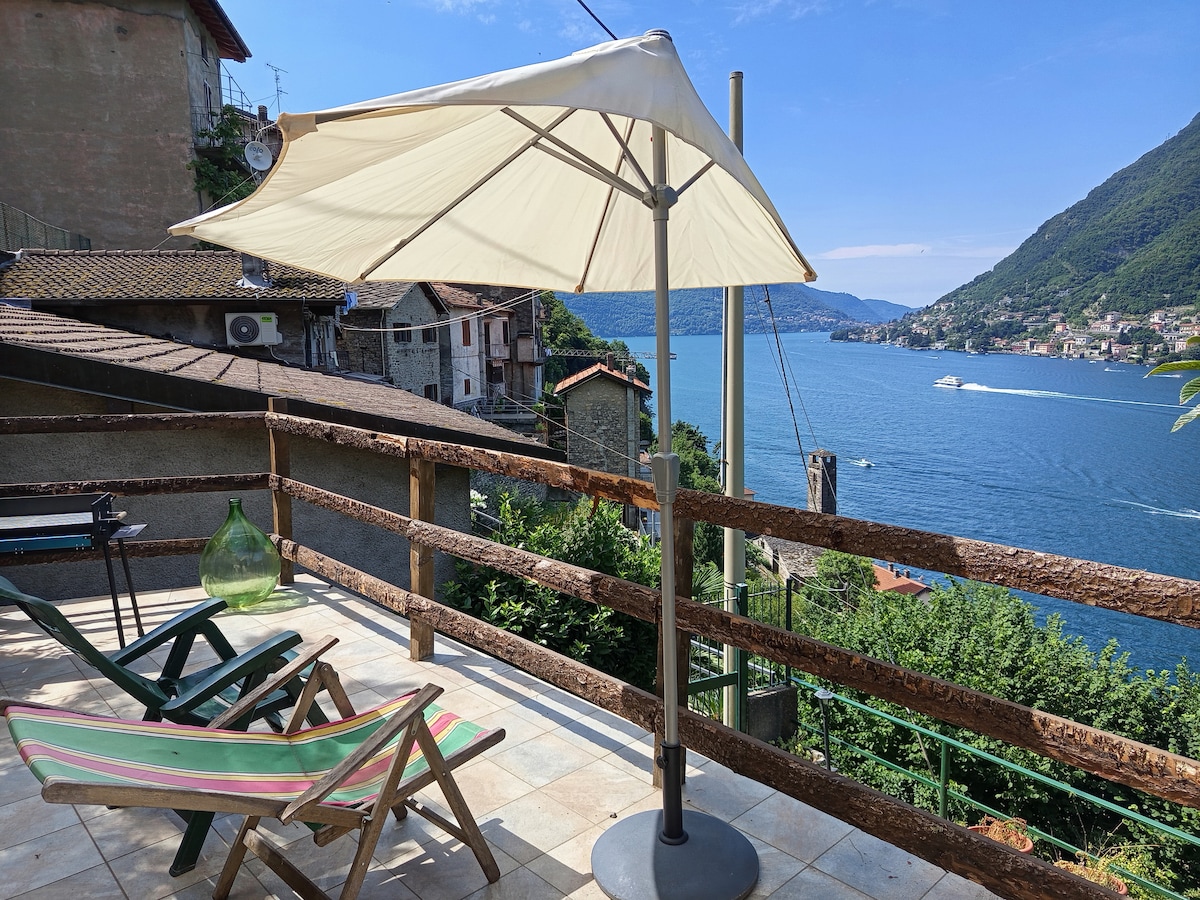 Codice Identificativo Nazionale: IT013145C2D6NO4CMY. La casa è situata In posizione soleggiata, a 300 metri dal centro paese, fermata bus e ferry area. Per raggiungerla a piedi, ci sono circa 150mt. in leggera salita di cui gli ultimi 50mt. senza marciapiede. Gode di un'incantevole vista lago, paese e montagne circostanti. E' circondata da un piccolo giardino recintato. L'appartamento, ben equipaggiato, dispone di: aria condizionata, parcheggio, WiFi e TV sat .