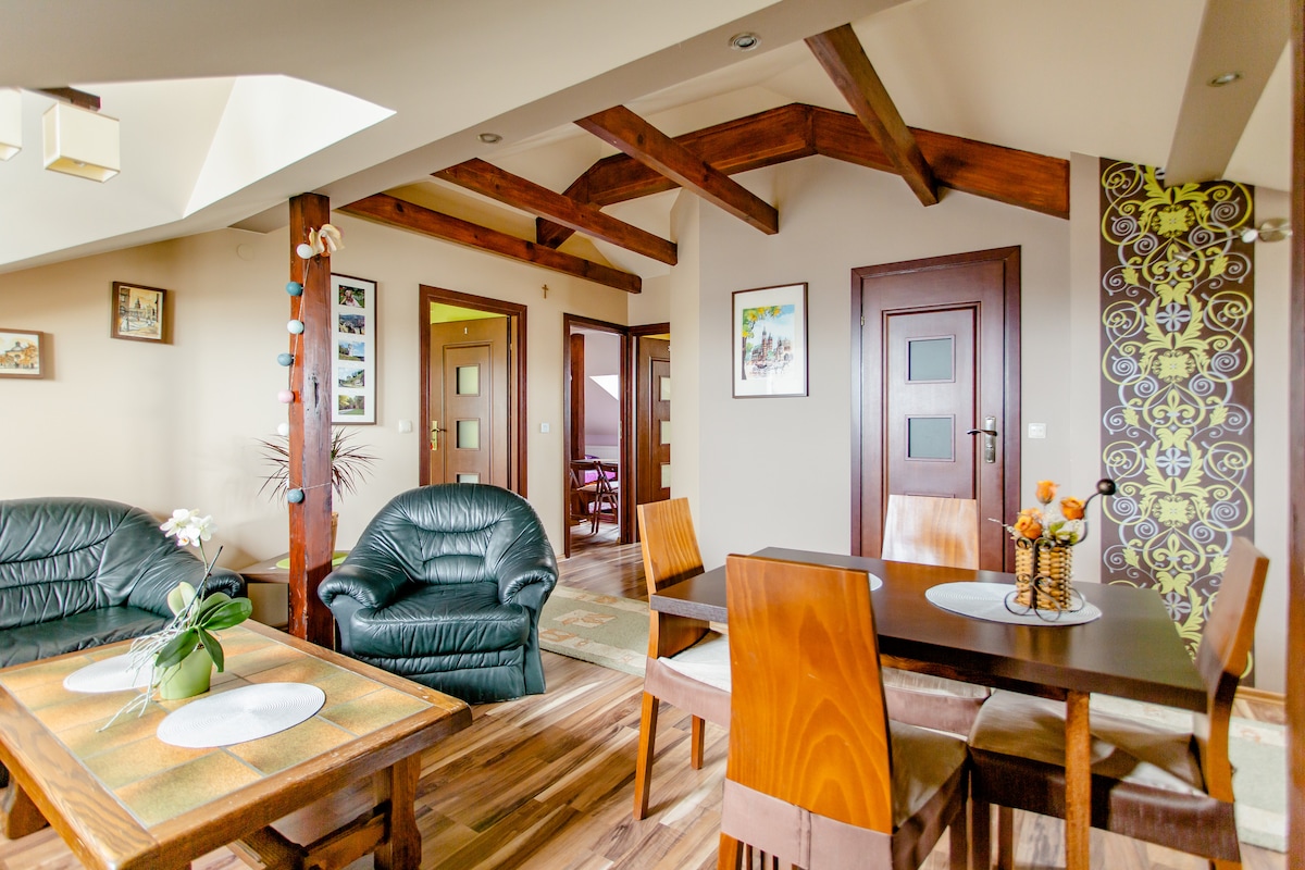 Do Państwa dyspozycji oddajemy komfortowy apartament w skład którego wchodzą: pokój trzyosobowy z łazienką, dwa pokoje czteroosobowe z ogólnodostępną łazienką, salon oraz aneks kuchenny, parking. Dogodny dojazd do centrum Krakowa, Lotniska Balice.
