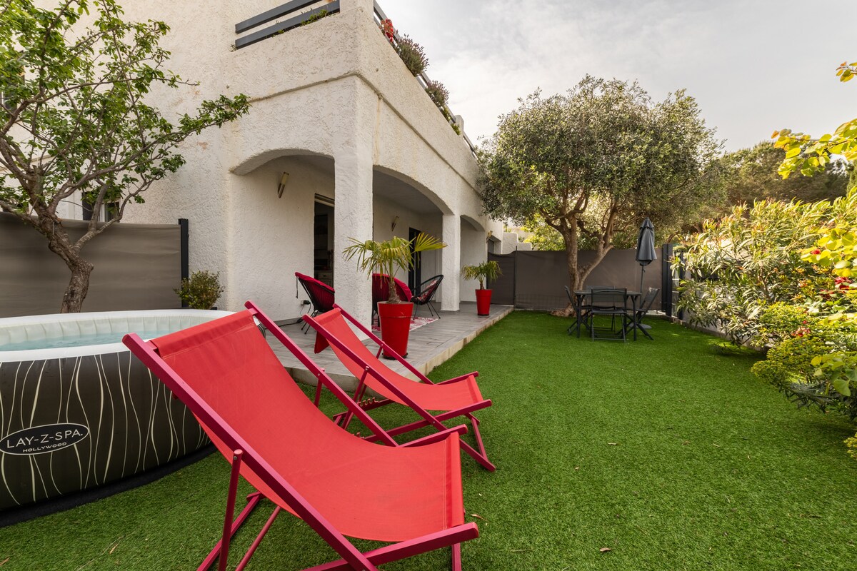 IDEAL* séjour en bord de mer dans un quartier de pécheurs calme et résidentiel. Maison de plein pied de 32 m² à 300 mètres de la plage avec son jardin privatif comprenant un équipement extérieur: coin repas avec son parasol, coin détente avec son salon. En option payante supplémentaires un SPA 4 places.