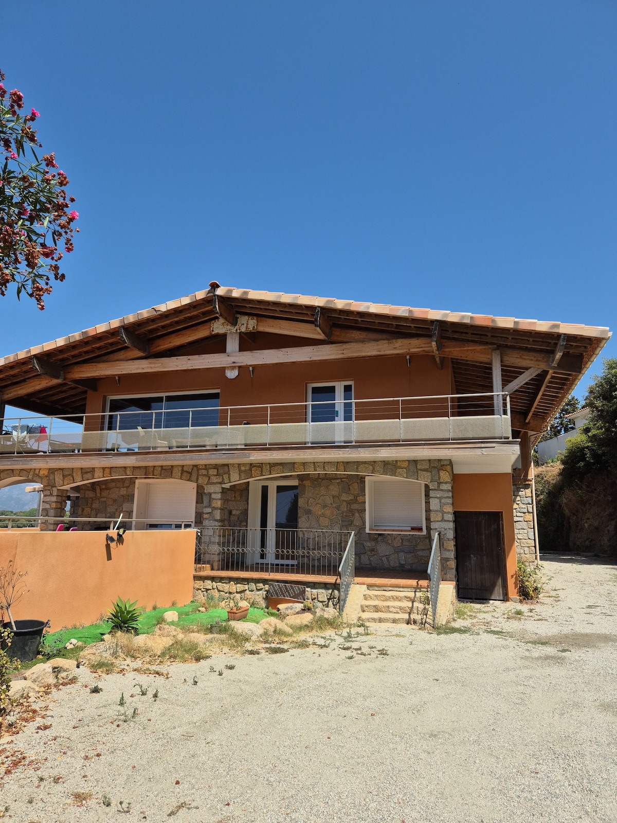 Bas de villa avec une vue imprenable sur le golfe du Valinco et Campo-Moro idéale pour une famille ou entre amis.Proche de Propriano (7 kms).Plages à gogo et activités multiples ,la villas est au centre du sud de la Corse dans une oliveraie ,entre Bonifacio et Ajaccio à 40 minutes des Aiguilles de Bavella. Proche (URL HIDDEN) location comprend une salle de bain avec un wc ,un autre wc indépendant ,1 lit de 160x200 ,un lit de 140x190 ,deux lit jumeaux 80x200 .Location en été du samedi au samedi .