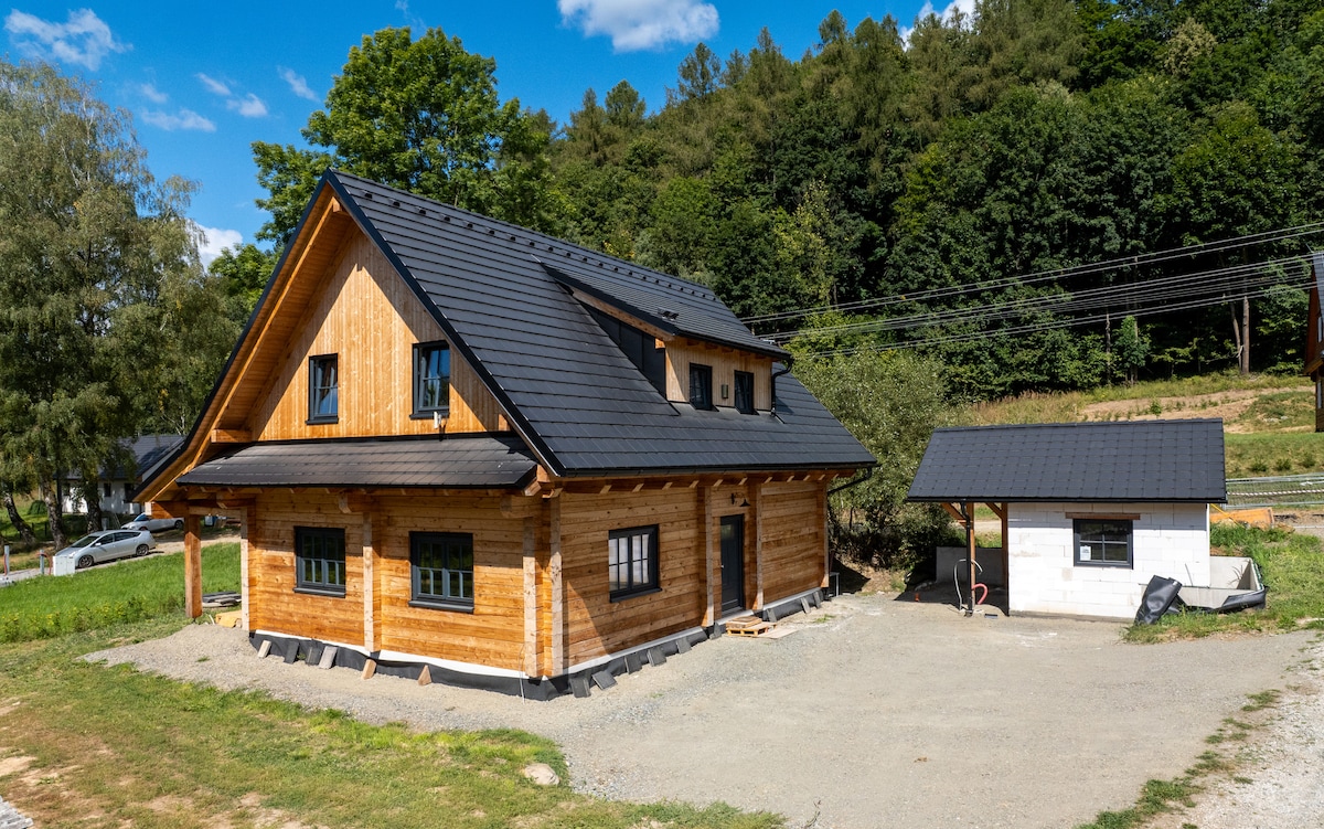Nově postavená Chalupa Hayek v obci Česká Ves vzdálená jen 1 km od města Jeseník, Priessnitzových léčebých lázní a pod rozhlednou Zlatý Chlum. Pokud hledáte pohodlí v nově postavené chalupě s velkoryse koncipovaným interiérem jste tu správně. Chalupa skvěle poslouží hostům, a to jak v létě, tak v zimě. Svojí velkostí je uzpůsobena pro pohodlný pobyt až 8 osob. Chalupu pronajímáme celou, tudíž budete mít své soukromí. Vaše pohodlí je pro nás důležité.