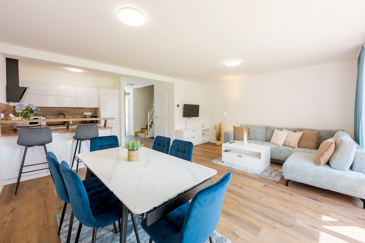 Immerse yourself in the magic of a hundred years of history in our apartment, which is located in Hlušovice near the pond, in a picturesque village just 10 minutes from Olomouc center. We offer a cozy living room with a fully equipped kitchen, four comfortable bedrooms, two modern bathrooms, a terrace with outdoor seating, and a large garden. Ideal for families with children as well as demanding guests who value space and a higher standard of comfort.