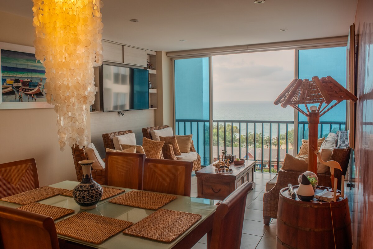 Apartamento ubicado en el Hotel Colon de Salinas. - Cuarto con Smart TV de 75 pulgadas y Netflix - 2 baños con ducha - Balcón con vista directa al mar - Sala - Cocina - Café y cafetera - Parqueo privado - Seguridad 24 horas - 3 piscinas - Justo al comienzo de El Malecón - Servicio de hotel (Restaurante, spa, gimnasio, room service). Estos servicios son independientes del apartamento. *Solo se permiten 2 huéspedes por noche* *Por favor tener cuidado con la hamaca*