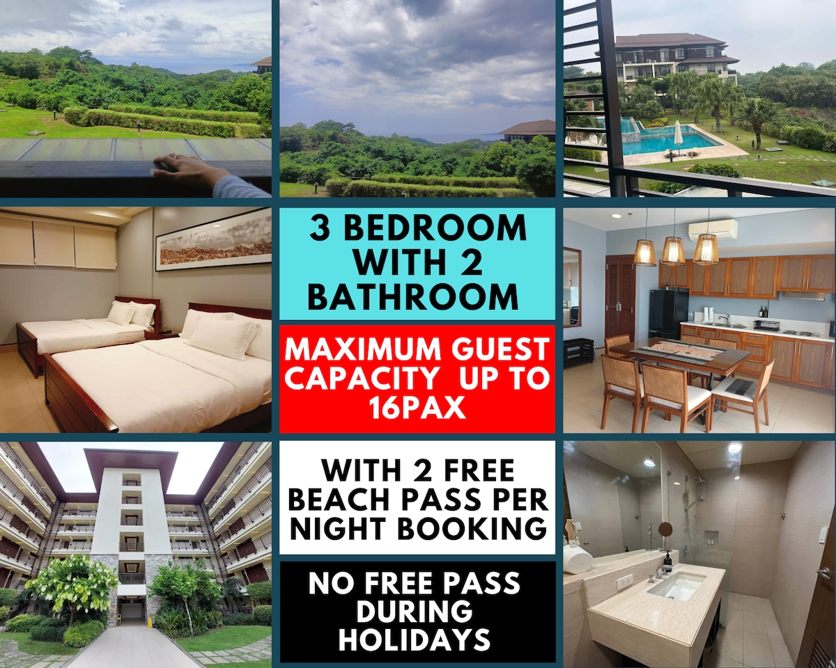 This 3-Bedroom Courtyard Unit at Sea Breeze Verandas Condominium offers a relaxing ambiance that is perfect for friends and family staycation with maximum capacity of 16 pax occupancy. The Condo Unit has beautiful Sea views, but it is not Beach Front. It is 5-10minute ride in your car to the Private Beach Club. Free Access to Swimming pool condo complex except Tuesdays (from 10am onwards for cleaning) Check in - 3pm Check out - 11am Note: Security deposit is required before check-in.