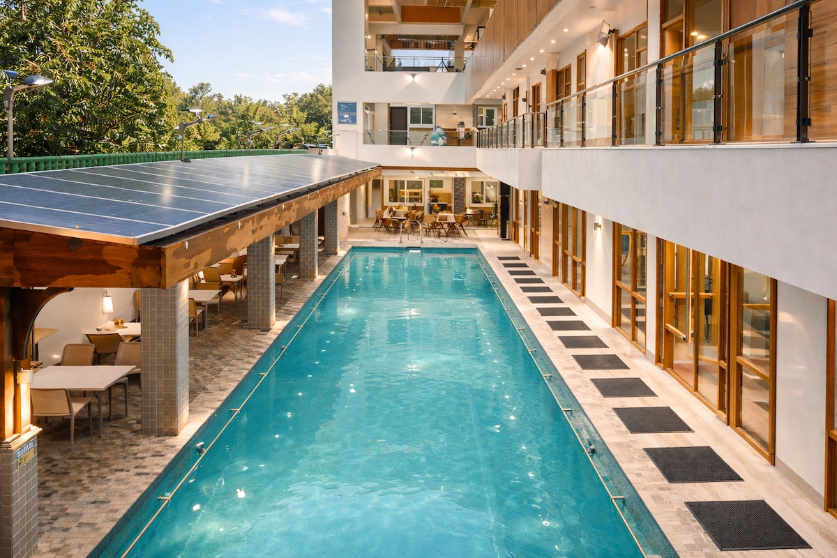 宽敞的房间-健身房、游泳池和现场用餐