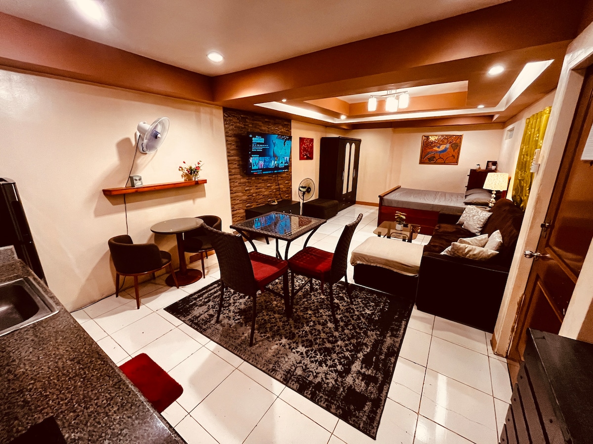 PROPERTY HAS BEEN CLEANED AND DISINFECTED Fully furnished one-bedroom apartment beautifully designed with sleek finishes and elegant undertones. Strategically located in SBFZ Central Business District. Perfect for business travelers, triathletes, couples and friends. Near Manila Ave sentry, stone-throw away to Ayala Harbor Point Mall. - 24/7 SECURITY - FULL KITCHEN - BRAND NEW LUXURY TOWELS, LINENS AND BEDDING - BATHROOM ESSENTIALS - WASHER/DRYER - 50” SMART HD TV WITH NETFLIX - FAST WIFI
