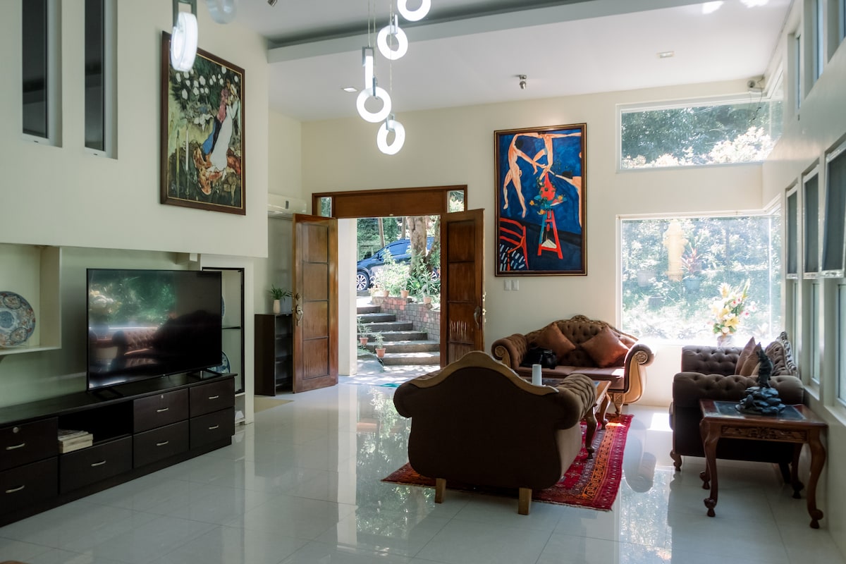Welcome to Nature Escape villa Jacuzzi . We have five attractions in our Villa (1) SPACIOUS 3-bedroom house over 250 SQM floor space with high ceiling and with spacious front yard and back yard (2) LUXURIOUS and PEACEFUL- Unit A is just like an Art Museum with Garden. You will enjoy relaxing bath time in the Jacuzzi of Master Bedroom. (3) You can enjoy OUTDOOR DINING on our Back Yard (4) Karaoke, PS4 ,board games, uno card and more (5) 2 FAST WIFI in the entire Villa