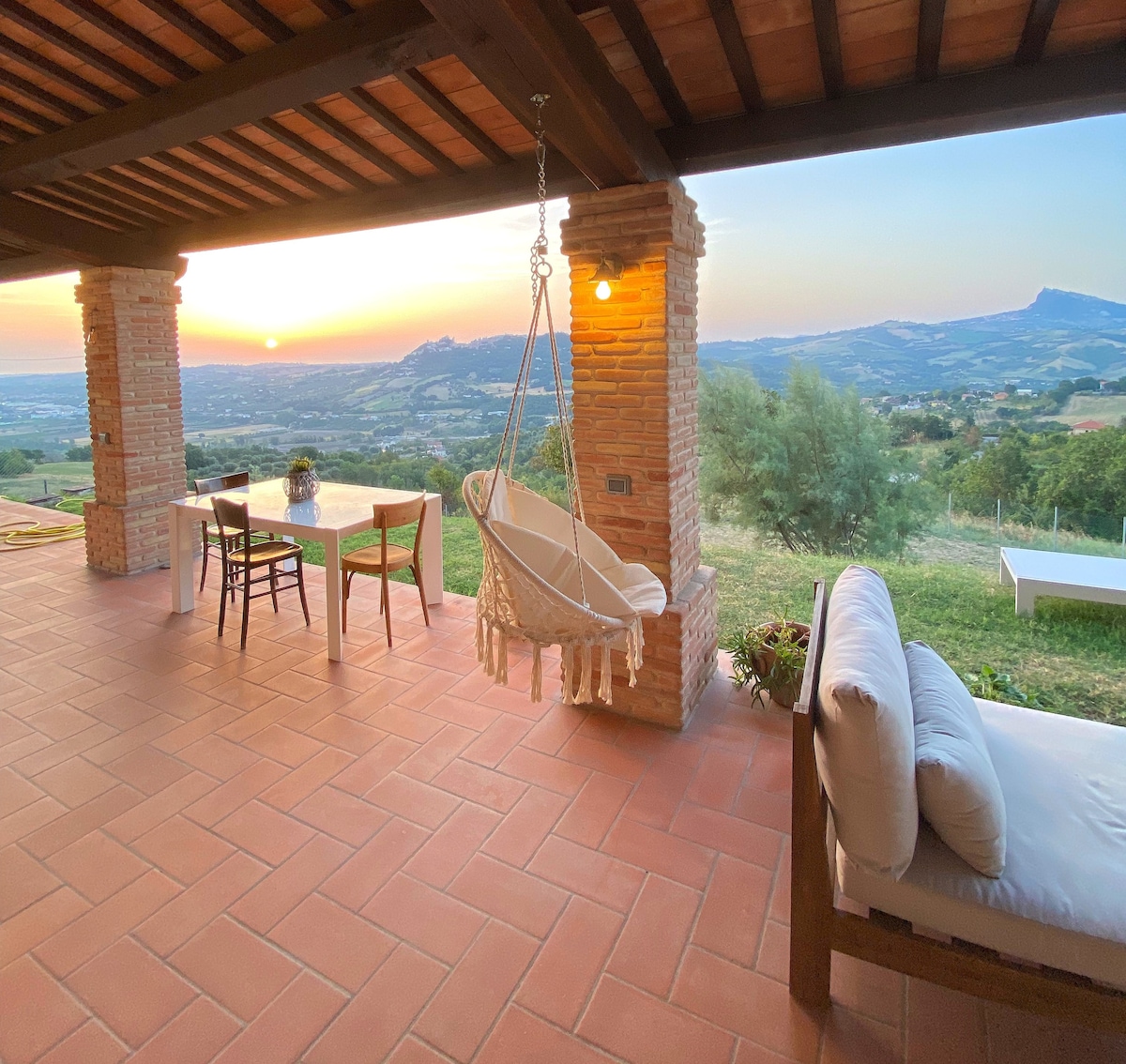Chalet Sole Luna, fully renovated, is a chalet-style villa set in 2,500 sqm of private greenery, surrounded by fragrant olive trees and shaded by a pine grove, on a scenic hill where nature and silence reign supreme. Complete privacy, breathtaking sunsets, and starry skies frame a truly restorative stay. Ideal for families and groups of friends. Just a few kilometers from the Misano World Circuit, it’s an exclusive retreat where peace meets landscape. The Chalet is Pet Friendly!