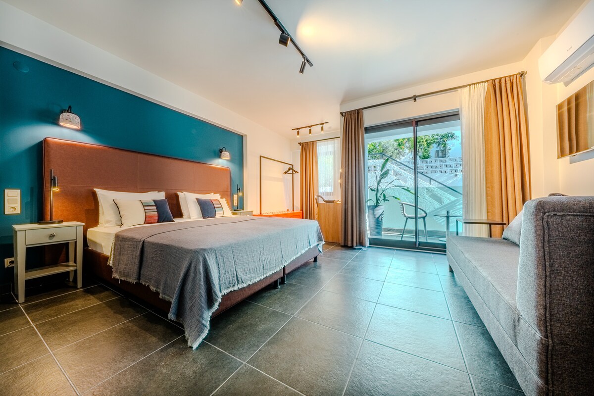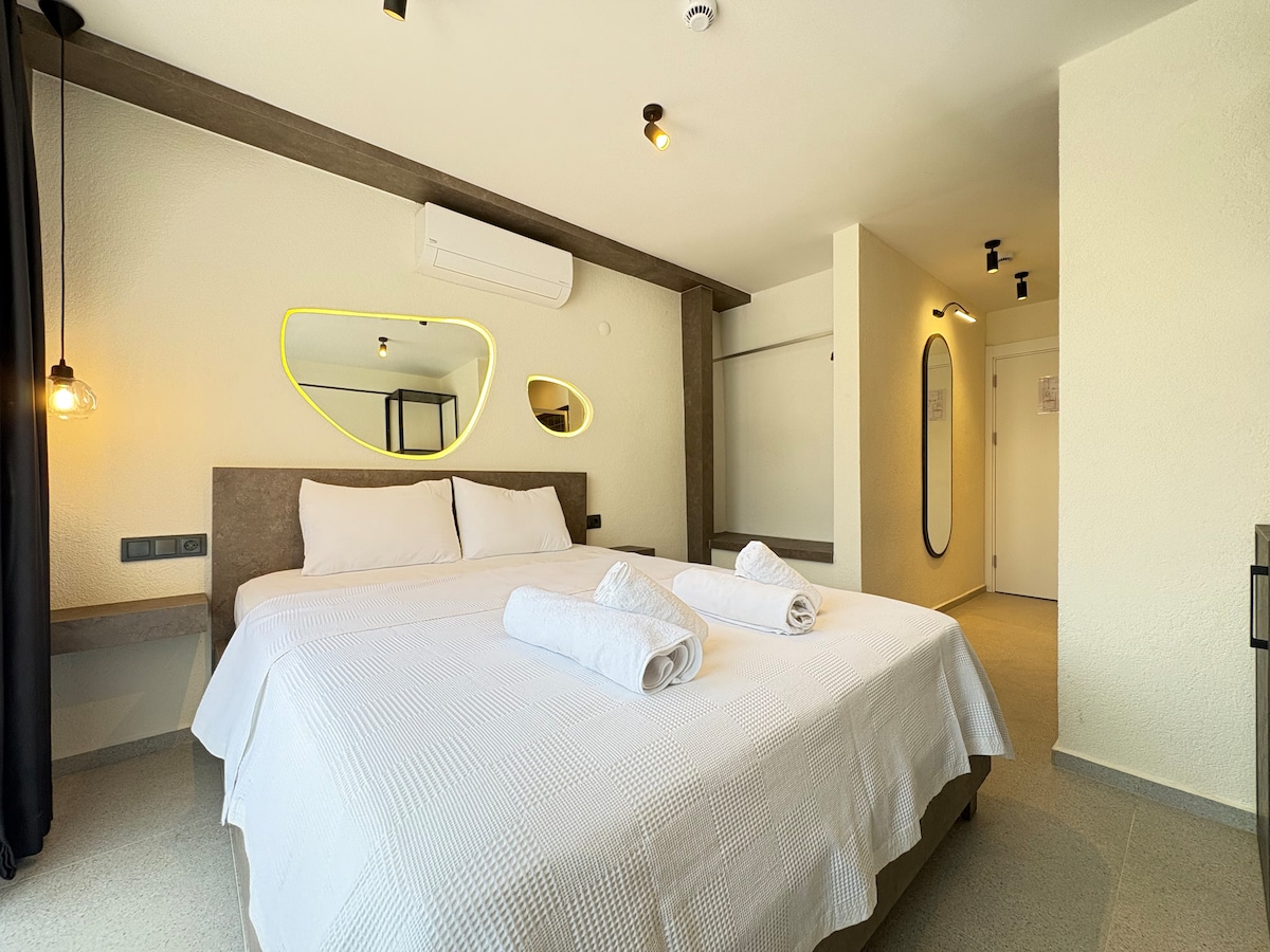We offer this top floor studio apartment in our family owned property. Our studio has a terrace you can enjoy the sun, a small kitchen with stove and fridge and WiFi access. Please note depending on availability apartments with same amenities with small differences might be available instead. Our pool is open for our guests during season. (between march and november)