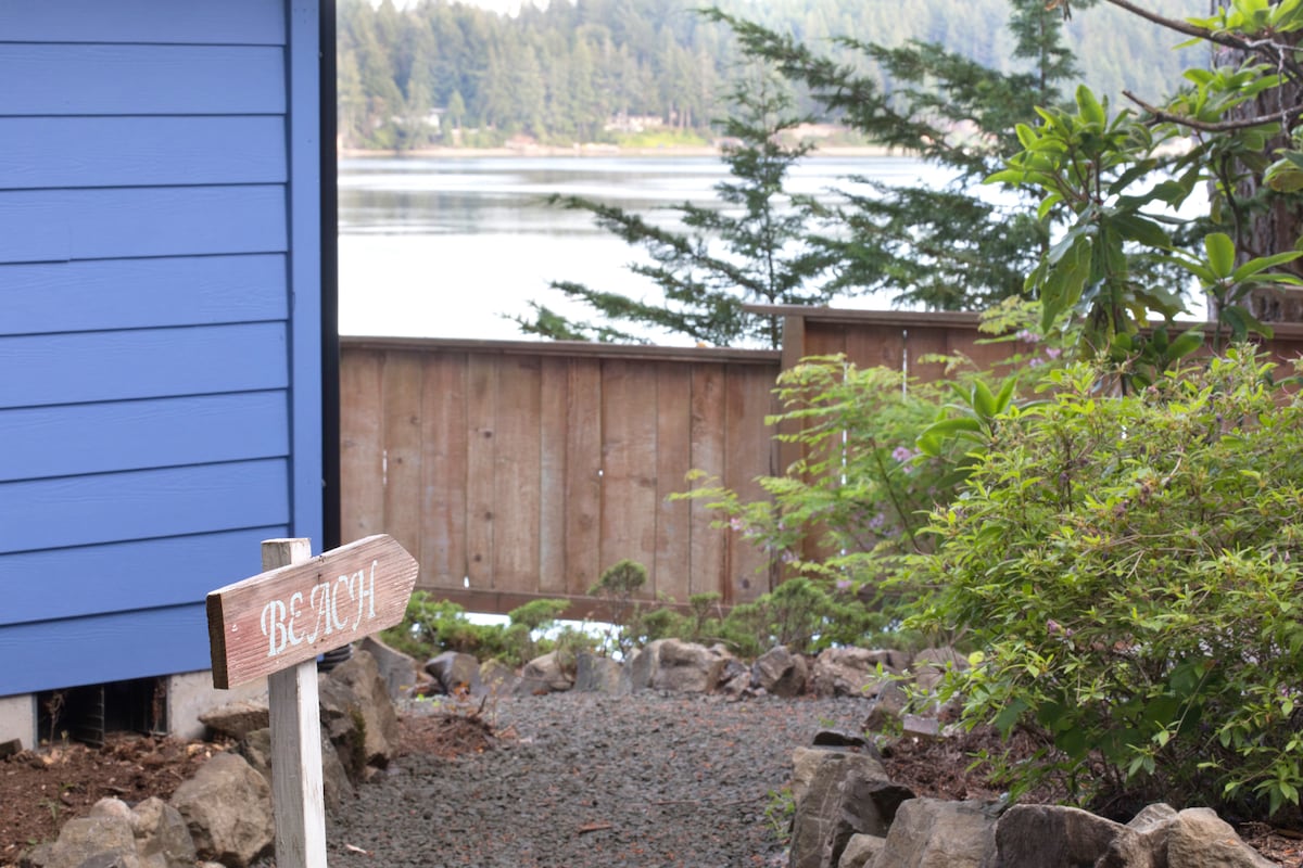 Wake up to spectacular views of Puget Sound and Mt. Rainier from this 700 sf, 2-story, chic and comfortable cottage on a 40 acre waterfront estate property. The southern exposure beach ( 1000ft of private beach) is the ideal for strolling, beach combing, and relaxing. A fire pit, propane bbq, hammocks, and lounge chairs awaits for outdoor r & r. Trails through the forest for hiking. Mountain bike trails at Dockton Pk..Your pet is welcome, leashed, with an additional pet fee.