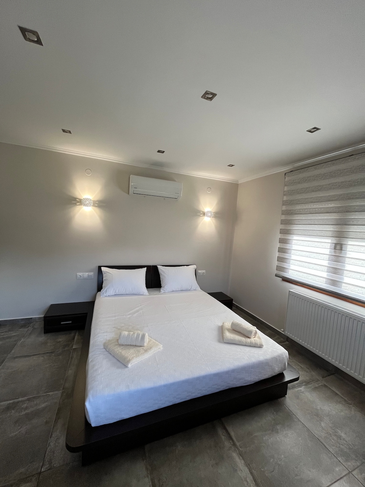 A newly built home, made with care, beautifull with all the amenities to ensure a comfortable stay. Kitchen fully equipted. TV, A/C. Both bedroons have anatomic hypoallergenic mattresses and pillows. A large bathroom with hairdryer and washing machine. Large private terrace with ceilling fan and sun loungers in the yard.Outdoor shower. Only few steps by the sea.Nearby there are taverns, SM, shops, cafes and bars.Thessaloniki airport is about 35km away and only 13km is the Petralona Halidiki Cave