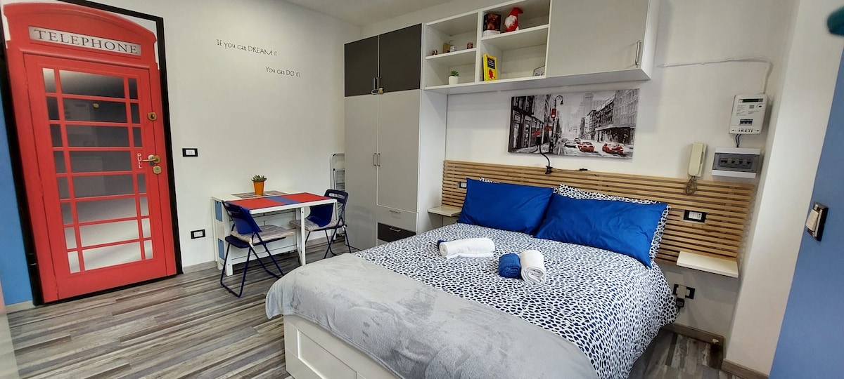 A unique experience. This studio flat is called British Corner with the colours of the British flag. It is bright, airy and welcoming in an area full of amenities. Great for romantic moments with your dear ones. Unlimited WIFI. Free parking around the block. Rooms sanitized with ozonator and sanitized thoroughly with high-temperature device.