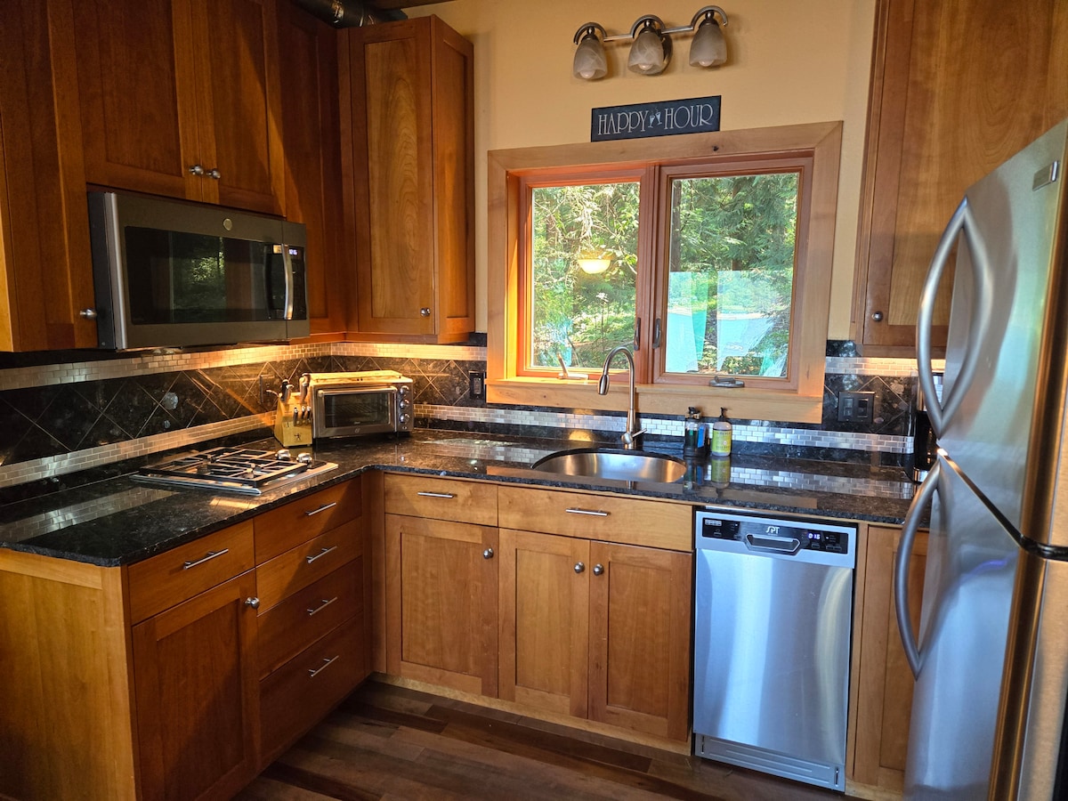 Welcome to your waterfront haven on the Hood Canal! Nestled directly on the water, our cabin offers modern comfort and rustic charm. Perfect for a romantic couple’s escape or with friends or family. 25 min - Belfair (restaurants, groceries) 95 min - Seattle 2 hrs - Olympic National Park CABIN FEATURES: ☀ Right on the water: watch herons, seals, orcas from bed! ☀ Private beach ☀ Firepit, Hot Tub, grill ☀ Water toys & kayak ☀ King bed with water view ☀ Large hot tub ☀ Wood-burning fireplace