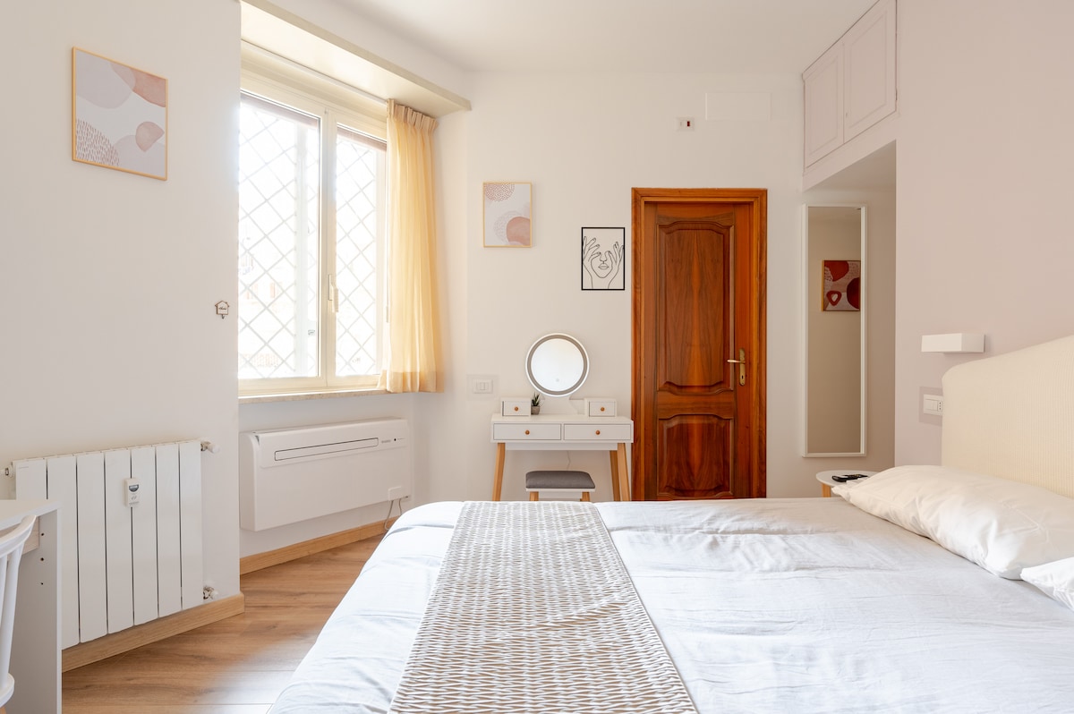 Casa Benedetto is located in the Prati district, 5 minutes from the Vatican, near Via Cola di Rienzo, a shopping area, restaurants, and 10 minutes from the center. It is suitable for couples, business travelers and families: the two bathrooms help! Equipped with soundproof windows, air conditioning, independent heating. The kitchen is well equipped. Access is safe, with double doors (one armored). Rome Boutique Apartments has other apartments, in the same building, advertised on Airbnb.