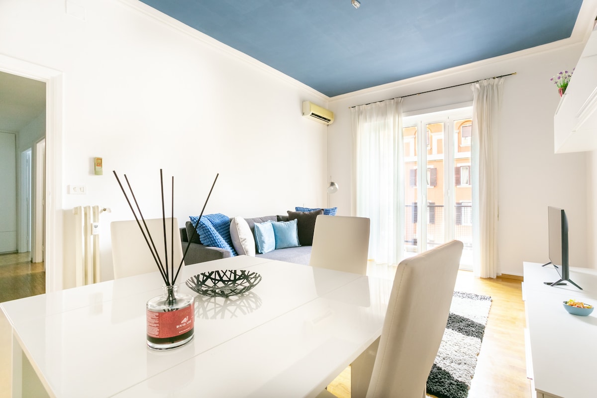 Stay in Rome as if you were at home! Indulge in the comfort and style of this tastefully appointed home. The flat features a stark all-white interior, an array of motifs, splashes of color throughout, and an open-concept layout. We are not an impersonal service of management of Airbnb houses, we are real people who live in the apartment next door. We know all the most interesting places in the area and we love helping our guests to have a great experience for their stay with us. Our added value is the human touch that is the essence of Italian lifestyle. The entire apartment is available to guests with independent access My apartment is next to the one that will host you. And we like to socialize with our guests and help them have a great experience during their stay in Rome The Prati district is in the historical center of Rome just a few hundred meters from the Vatican and Metro A. The house is in the middle of an area full of excellent restaurants that offer traditional Roman and Italian cuisine. The area is full of public connections. At 200 meters from the house, in Piazzale Clodio, there is a bus terminal, a 5-minute walk from the Ottaviano della Metro stop. Also in the area you can rent free floating bikes and shared cars (Enjoy Car2GO ..). It is an area crossed by the longest cycle path in Rome that will contribute to the construction of the GRAB, the great ring road for bikes, It is close to via Cola di Rienzo which is one of the best shopping areas in Rome. It is also a completely flat area full of life and people at all hours of the day so it is also a pleasant walk to the most tourist areas such as the Vatican, Piazza del Popolo, Piazza di Spagna, Villa Borghese. The house has just been renovated and all the furniture and appliances are new. Prati is the best neighborhood in Rome and is a great starting point for visiting the capital of the world.