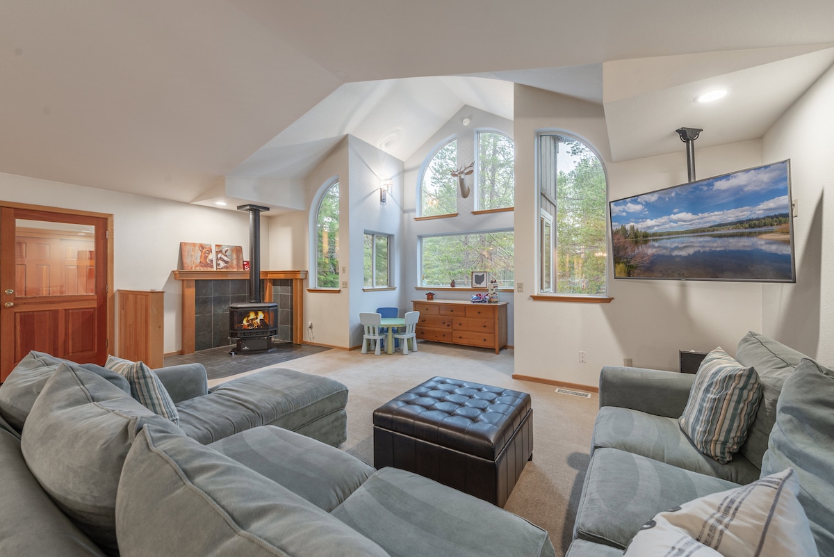 Welcome to your sunny home in the beautiful Tahoe Truckee Sierras! Tahoe Donner is a fun-filled community with many activities and a rec center with a hot tub, sauna, swimming pool, tennis, pickle ball, bocci ball, and full gym. Golf, Private Lake and Beach access, and an affordable ski hill. A cozy, comfortable haven to relax after playing in the snow or sunning at the lake, with a complete kitchen ready to cook a big family meal and an open common area to spend time with friends and family.
