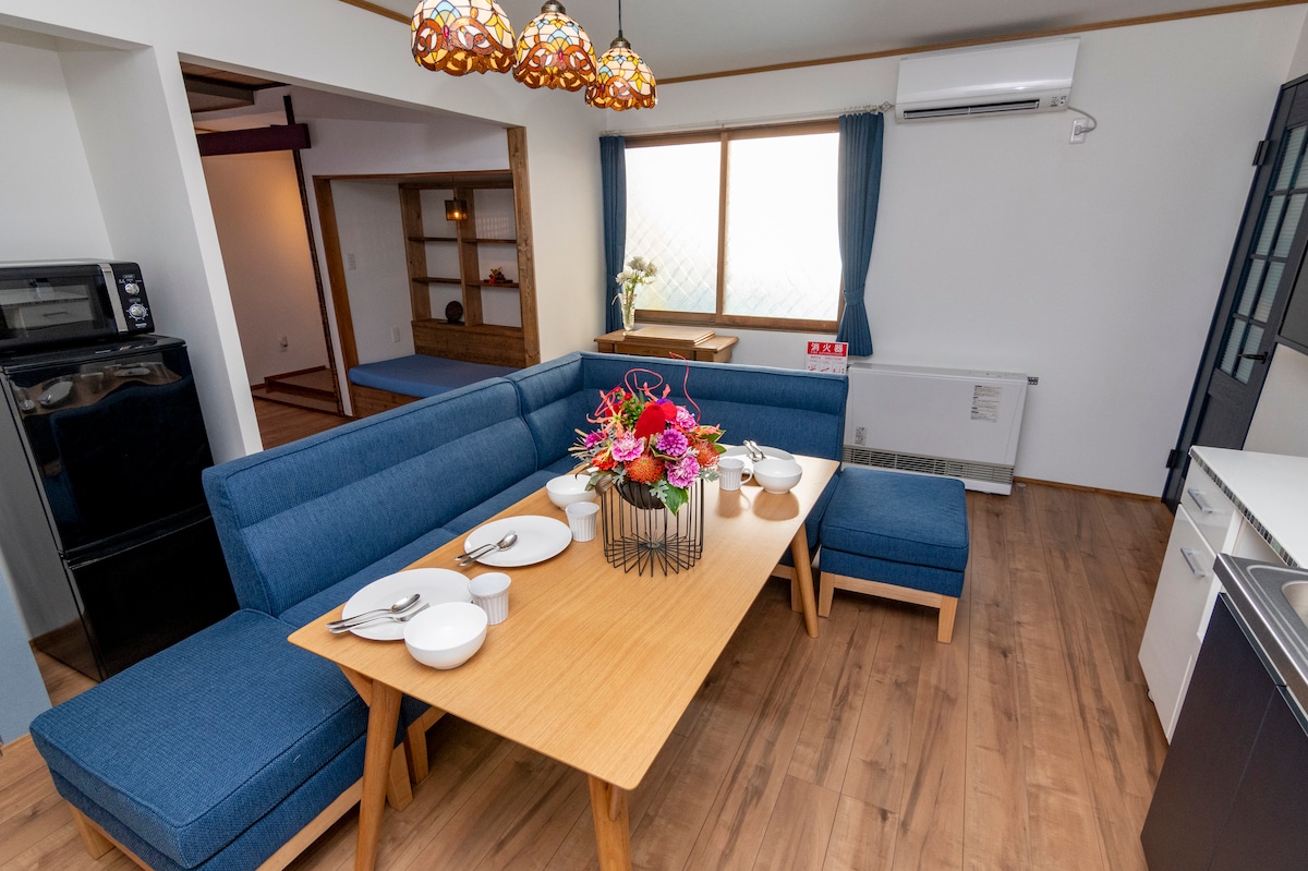 【宽敞平房】亲子首选 / 厨具齐全 / 按摩椅 / 步行5分至车站 这是一栋翻新过的日式单层古民家(3LDK)。 特点是**“宽敞”且“无楼梯”**,3间卧室均直通客厅,非常适合带老人和小孩的家庭。 设施与厨房: 房内有整体厨房(System Kitchen)和齐全厨具。您可以去附近的超市(步行5分)购买函馆海鲜,亲自下厨。还有按摩椅和孩子喜欢的玩具! 位置与注意事项: 位于函馆西端的安静住宅区,虽然远离市中心喧嚣,但前往主要观光区(索道、仓库群)仅需车程5分钟。 路面电车站(终点站):步行5分钟 便利店 & 超市:步行5分钟 温馨提示:从电车站到房源是一段缓坡。虽不陡峭,但若携带大件重行李,请您留意。 期待您在此留下难忘的回忆!