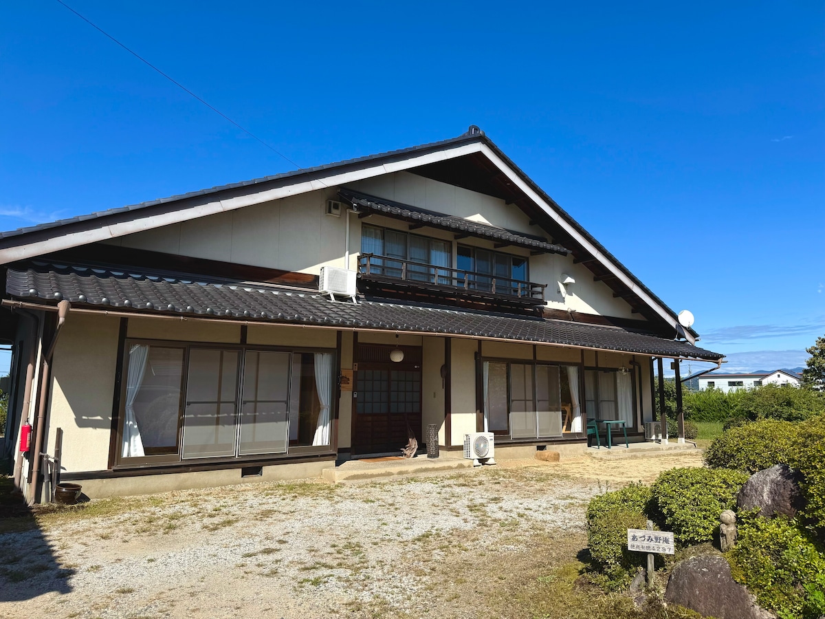 *PLEASE SEE SECTION BELOW* Located in north-middle Nagano, Omi is a beautiful and quiet small village. Filled with beautiful landscapes of Japanese farming lands and mountains which are enjoyable throughout the seasons. Our 130 year-old traditional Japanese house has been renovated for your comfort while holding onto its history. Renewed as a duplex house! You have almost the entire 1st&2nd floors of the west side of the house. Limited to one group per day. Please see below about the house.