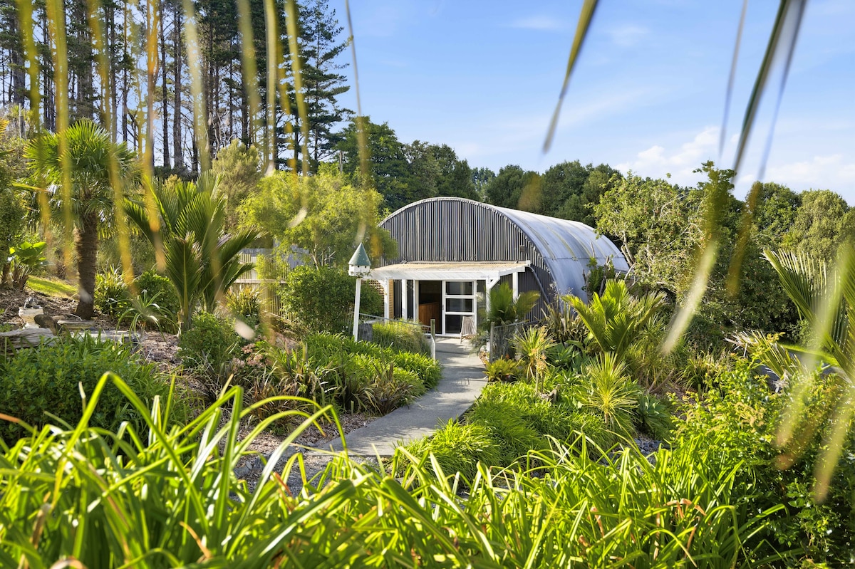 A unique hilltop and off grid eco-chic retreat located amidst 50 acres of mixed forest and native New Zealand bush. If you want a digital detox, this is a magical place to reconnect with nature while enjoying the bird life and beautiful views across the valley all the way to Hauturu / Little Barrier island. The house is a ten minute drive to Matakana Village, where you can enjoy the famous Matakana markets, local foods, wine, coffee and art experiences.