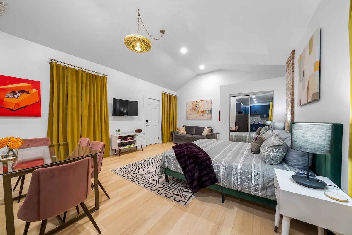 Our Little Boho studio on the top floor of a quiet 4-plex is the ultimate in modern comfort! Every detail is designed with luxury in mind, including a custom kitchen and bath, velvet drapery, and fine finishes. Relax in style with a plush king bed, full-size sleeper sofa, well-equipped kitchen, W/D, patio, and private parking. We are nestled in Little Bohemia, close to downtown, CWS, & the zoo. Enhanced cleaning and self-check-in ensure you're in good hands. Book now for an unforgettable stay!