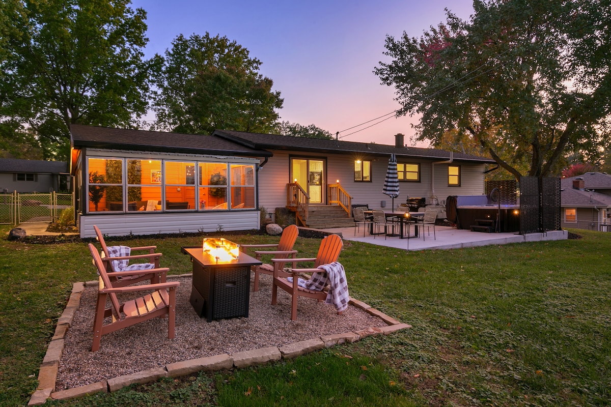 热水浴缸、篝火炉、带顶棚的门廊,位于奥马哈市中心