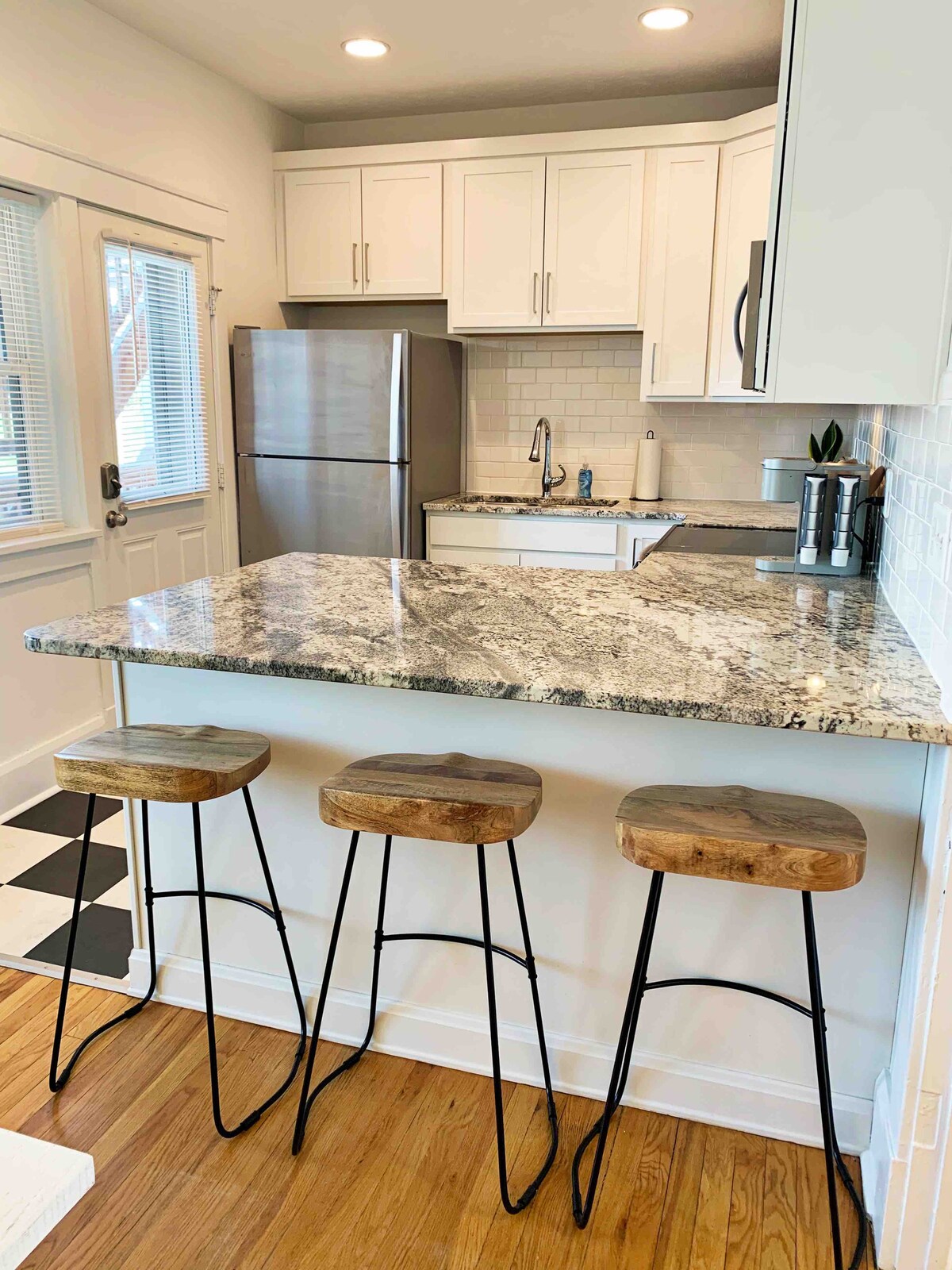 Charming two-bedroom condo in the heart of downtown Omaha. Cozy, comfortable, & fully equipped. Fully stocked kitchen, 2 bedrooms with queen beds, comfortable living room with beverage fridge & cocktail bar. Cozy sunroom with fully supplied coffee bar to sit & enjoy a morning latte or coffee, or turn on the twinkle lights at night & enjoy the view! Just a 5 minute walk from some of Omaha’s best locations: CWS, Gene Leahy Park, and the Old Market! Comes with one free gated parking spot.